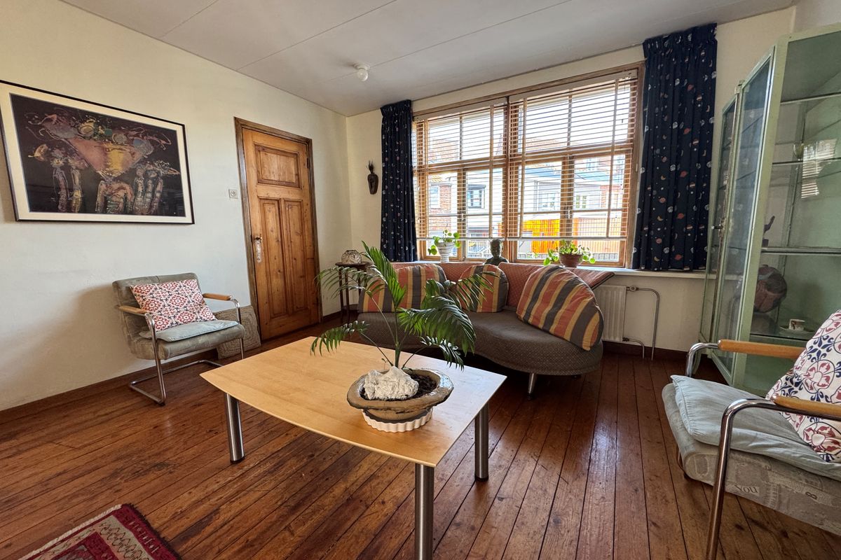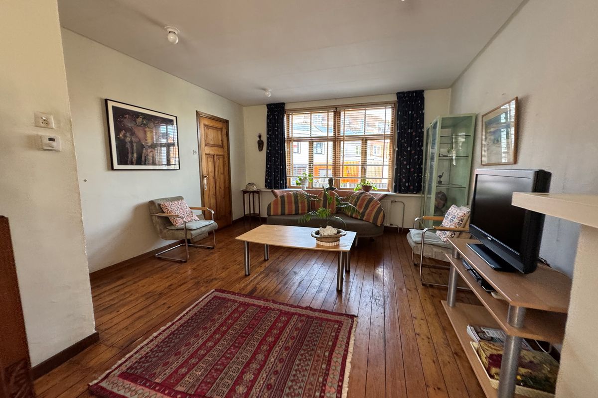 * Begane grond: lichte woonkamer met uitzicht op de sfeervolle straat.