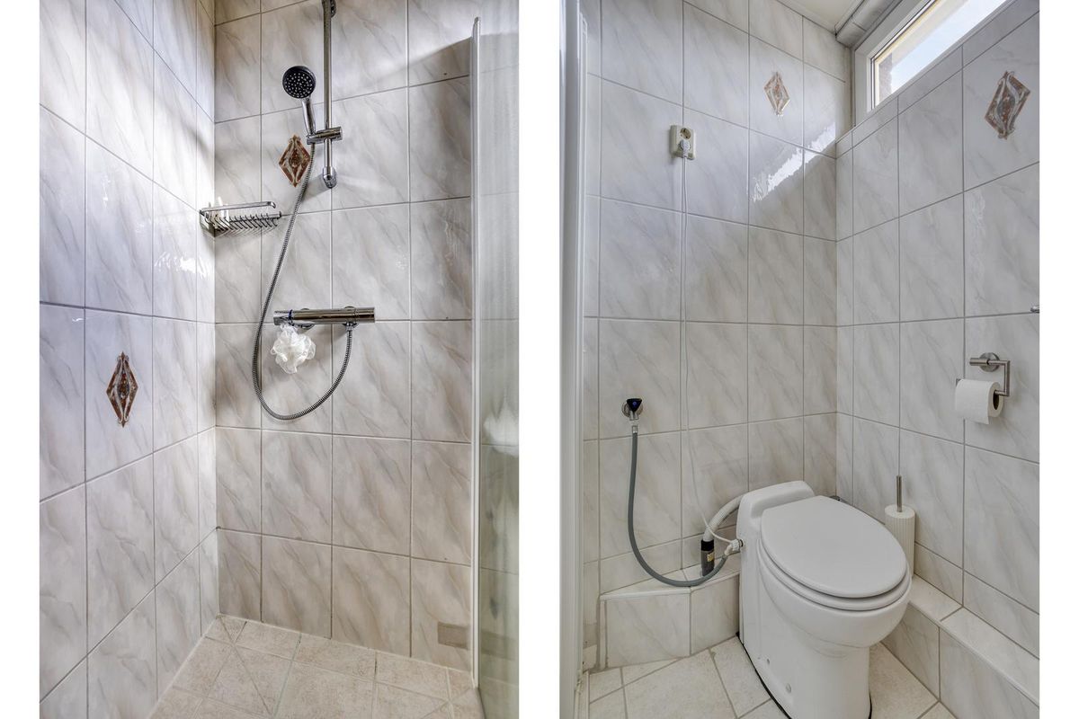 Overloop met 3 slaapkamers, badkamer en vast trap naar de 2e verdieping. Twee slaapkamers beschikken over vaste kasten. De badkamer is volledig betegeld en uitgevoerd met een ruime inloopdouche, wastafelmeubel met badkamerkast en toilet (sanibroyeur). De vloer op deze verdieping is afgewerkt met laminaat.