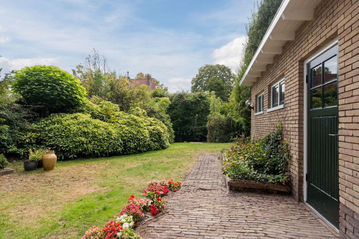 Oprijlaan van ca. 30m naar grote vrijstaande garage (parkeren op eigen terrein).