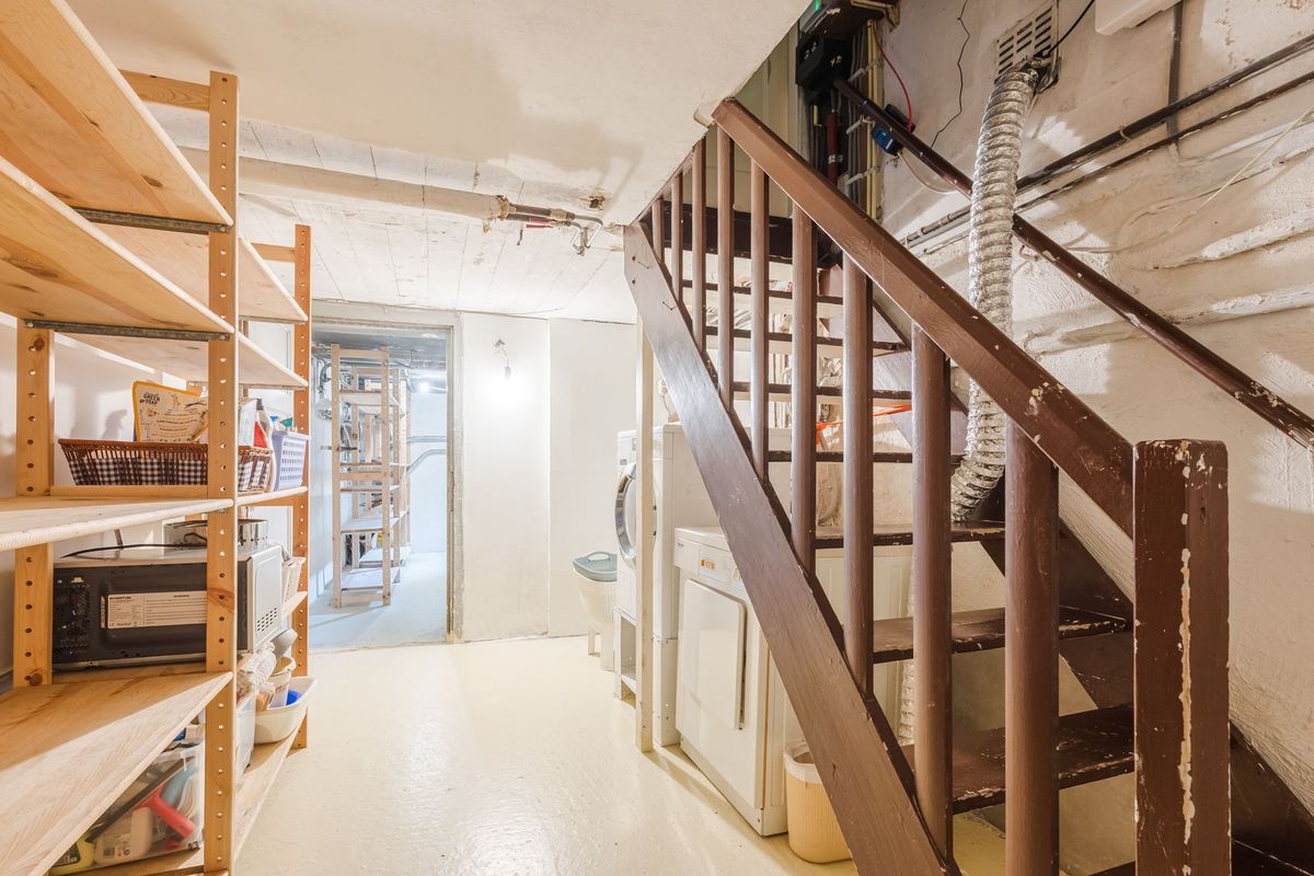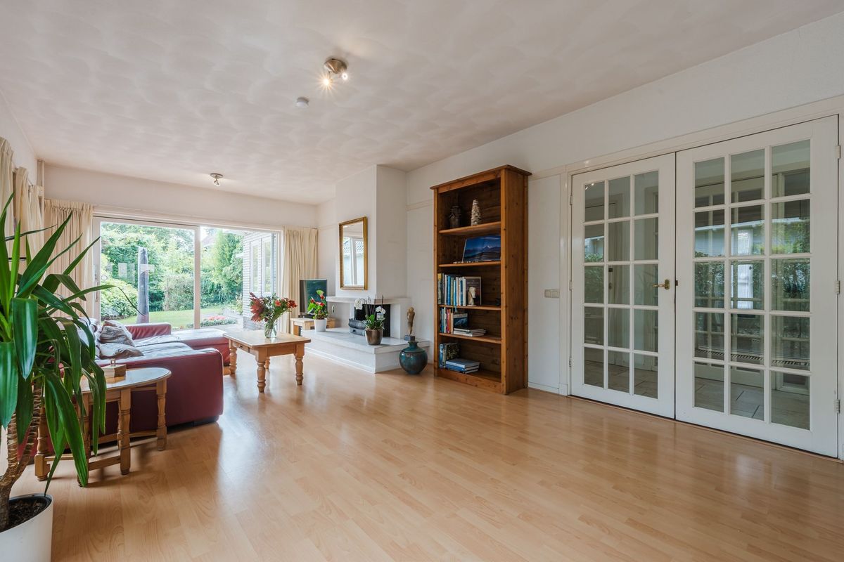 Entree, vestibule, trap naar grote droge provisie-wijnkelder (4x2.6m + 4.55x2.6m) met aansluiting t.b.v. diverse apparatuur; wasmachine / droger en close-in boiler. Ruime hal, toilet met fonteintje, garderobe, zeer fraai trappenhuis, deur naar grote (4m) brede woonkamer met deur naar (aansluitend) een grote werk-kantoor-(slaap)-zijkamer (ca.4x3.5m) met openslaande deuren naar / toegang tot de voortuin. Woonkamer (13m lang) met heel veel zijramen, open haard (aangesloten op CV systeem) en een schuifpui naar de prachtige zonnige achtertuin. De direct naast de woonkamer gelegen grote zijkamer kan eventueel ook bij de woonkamer betrokken worden. De moderne, ruime, lichte (uitgebouwde) eet-woonkeuken (ca.7x3m) met vloerverwarming heeft via 3 ramen en een achterdeur direct zicht op de achtertuin en beschikt over inbouw apparatuur.