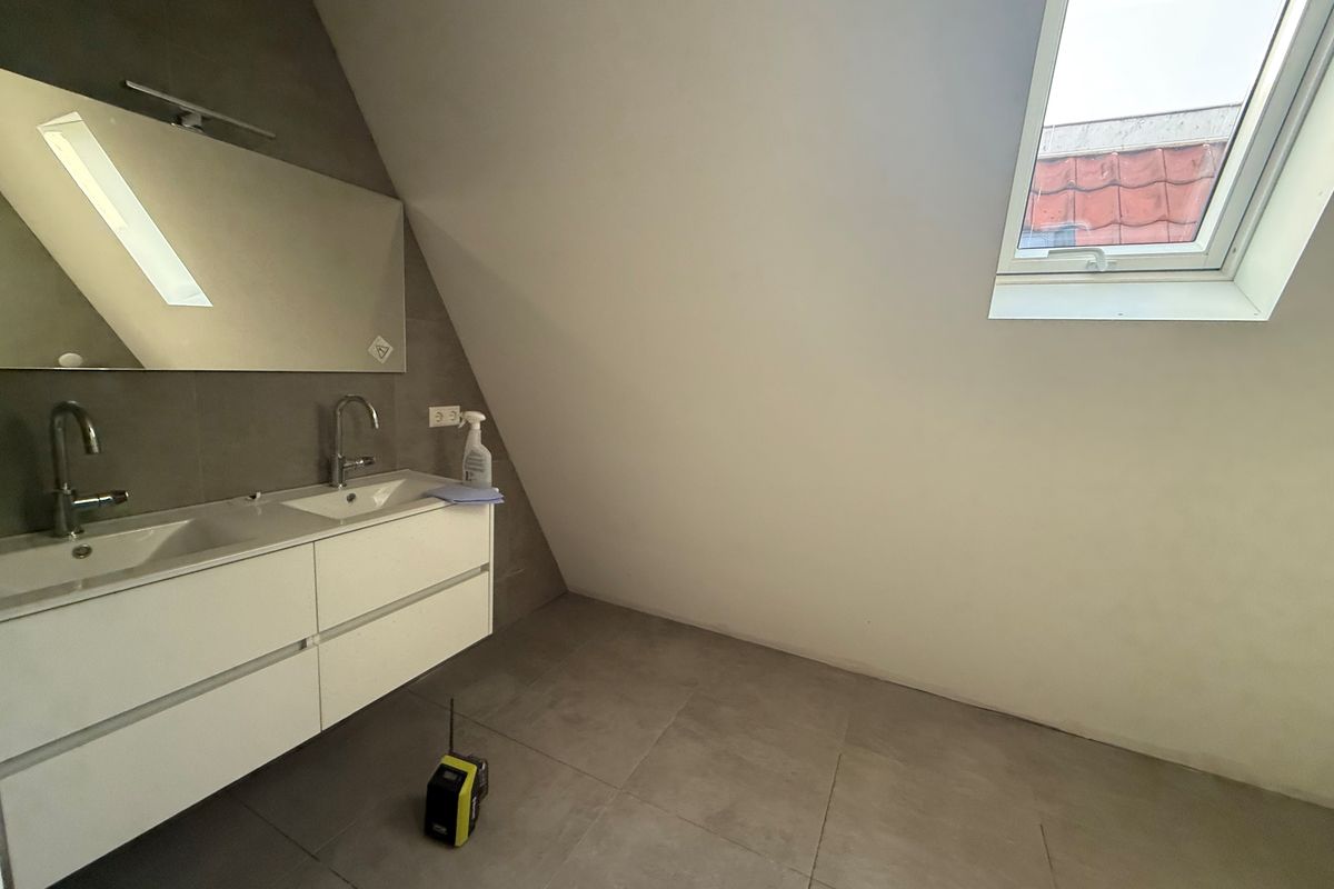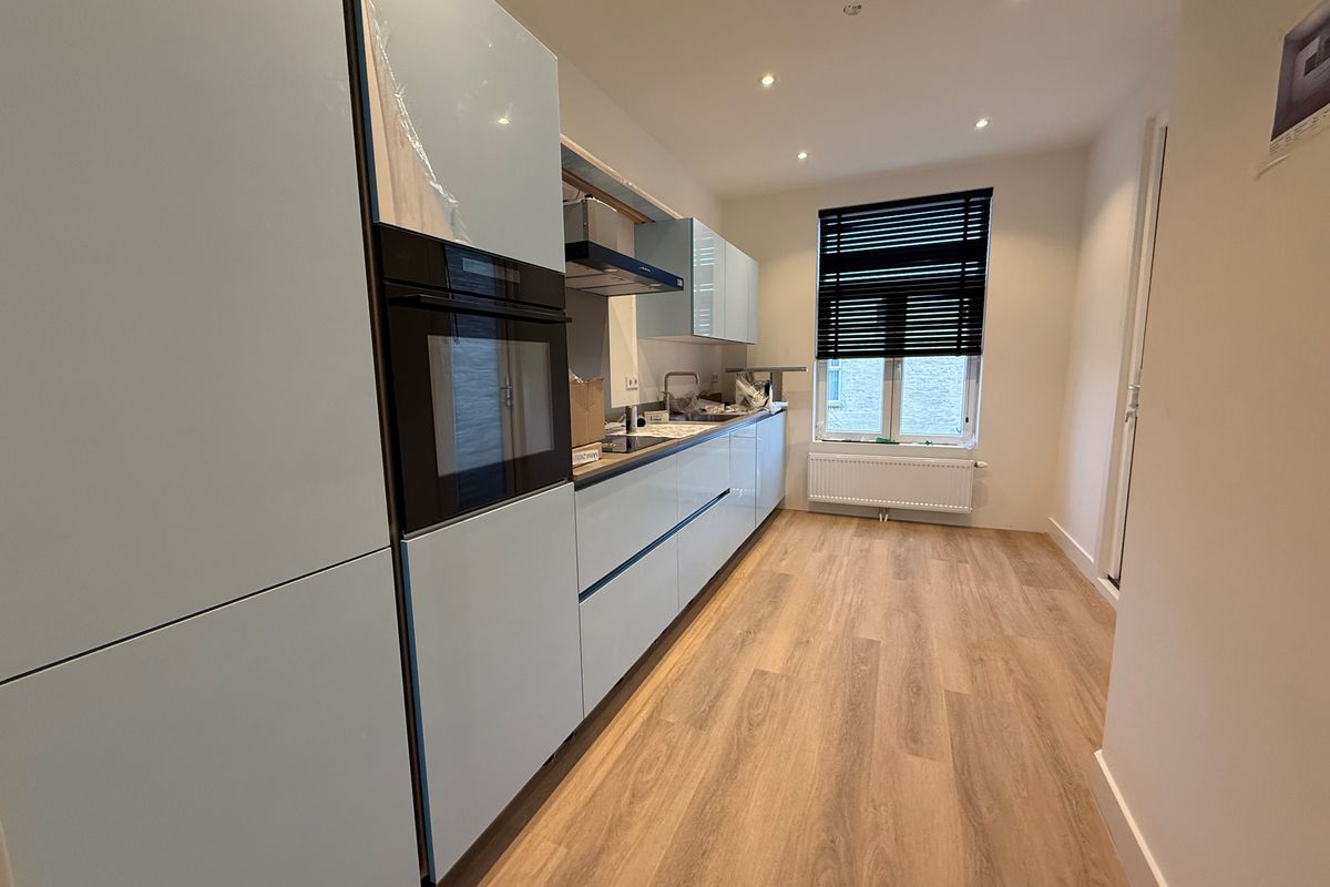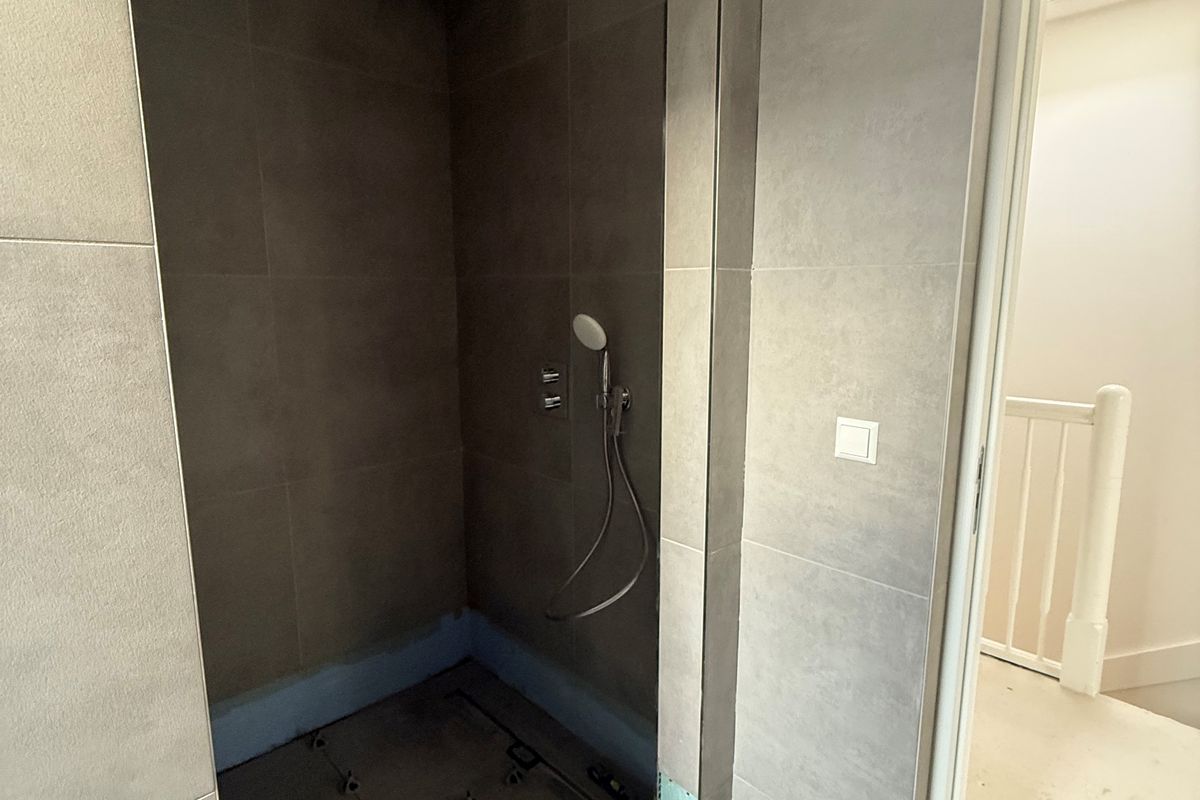 *Houd er rekening mee dat de foto’s zijn genomen tijdens de renovatiewerken. Het appartement wordt opgeleverd met hoogwaardige afwerking. De badkamer wordt voorzien van een inloop douche, ligbad, dubbele wastafel en radiator. De keuken is voorzien an hoogglans witte kasten en inbouwapparatuur. Het terras wordt nog afgewerkt.