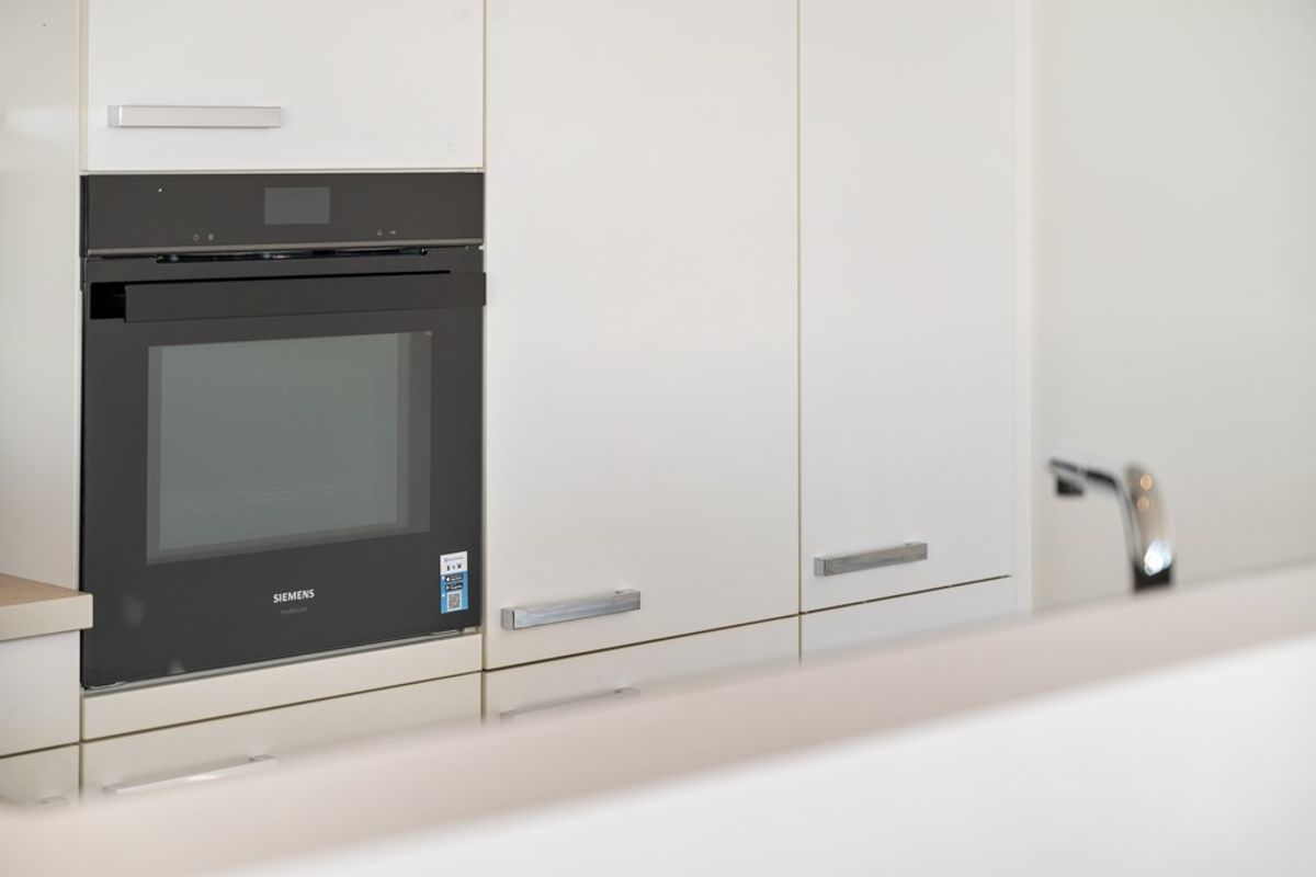 De keuken is gloednieuw en voorzien van diverse inbouwapparatuur, waaronder een koelkast, vriezer, oven, 4 pits inductieplaat en een vaatwasser.