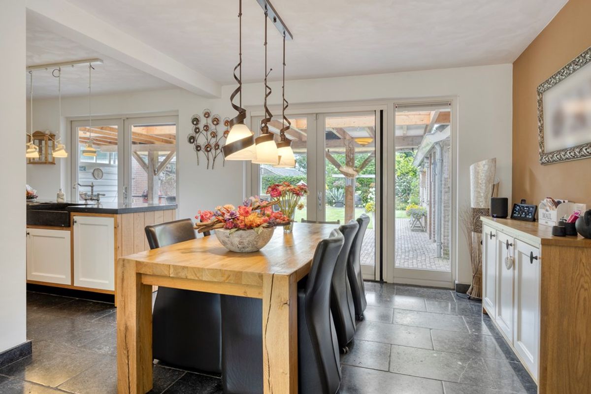 • Open keuken: mooie keukenopstelling met een prachtige, op maat gemaakte, keuken van K2 Keukens & Interieur uit Made. Keuken is bestaat uit a) keukenblok met 5-pits gasfornuis met dubbele oven, grilplaat, afzuigkap, koelkast en meerdere kastjes en lades. Deel b) eiland met spoelbak, vaatwasser en diverse kastjes. Beide keukenblokken beschikken over een natuurstenen werkblad.