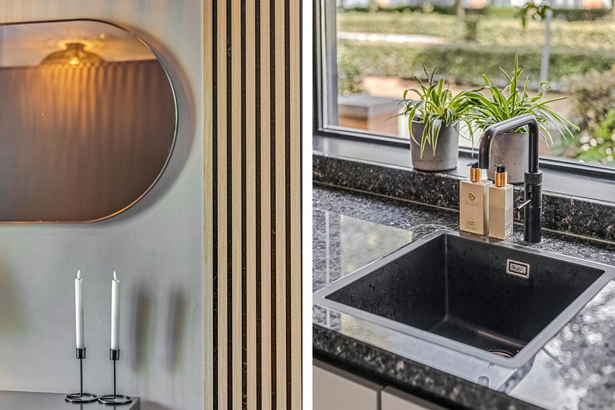 Bij binnenkomst merk je het direct: deze woning is tot in de puntjes afgewerkt. Een visgraat PVC vloer met vloerverwarming loopt door over de gehele begane grond en geeft een luxe uitstraling. De wanden en plafonds zijn strak gestuct, het hoge plintwerk maakt het plaatje compleet.