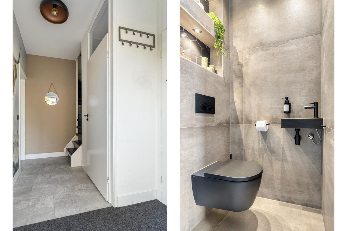 Via de entree aan de voorzijde van de woning wordt de hal bereikt. De hal biedt ruimte aan de meterkast, het toilet en de trapopgang. Vanuit de hal is de woonkamer te bereiken. Hier vallen direct de grote raampartijen op waardoor de lichtinval erg prettig is. In de woonkamer is aan de voorzijde een gezellige zithoek gecreëerd en aan de achterzijde ruimte voor de eettafel. De open keuken staat, door het eiland, in verbinding met de woonkamer. Het eiland kan ook nog dienst doen als gezellig barretje om aan te zitten. De moderne keuken (2020) is voorzien van alle benodigde apparatuur, zoals een koel- en vrieskast, een inductiekookplaat met afzuigkap, een vaatwasser, een oven en magnetron en zelfs een quooker! Er bevindt zich in de keuken nog een ruime kastruimte onder de trap, ideaal voor de provisie. Vanuit de keuken is de achtertuin te bereiken.