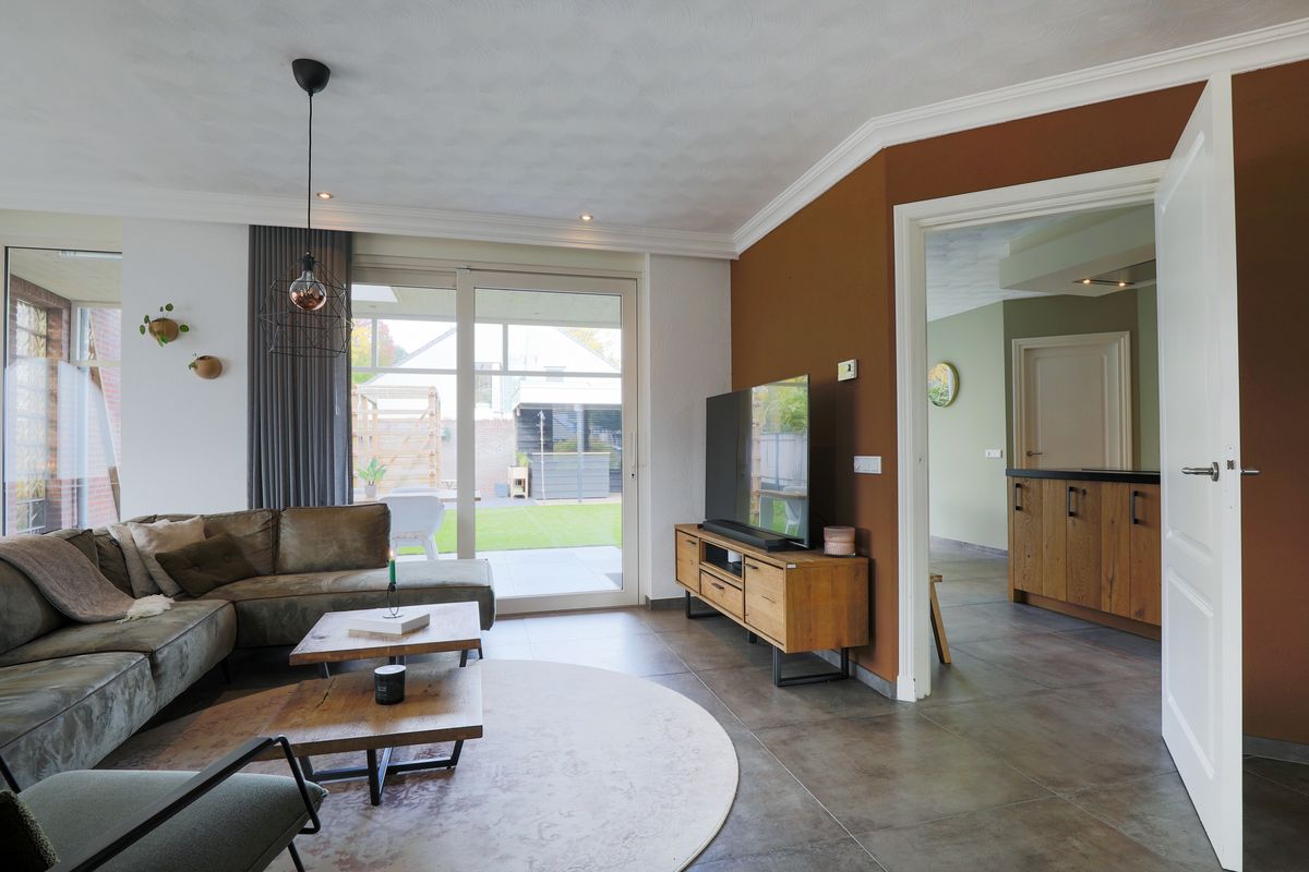 Dankzij de schuifpui aan de achterzijde én de grote ramen aan de zij- en voorkant stroomt het daglicht hier rijkelijk binnen.