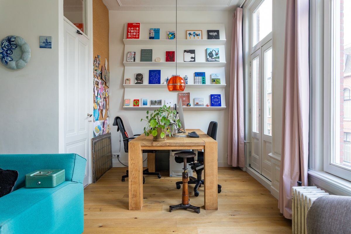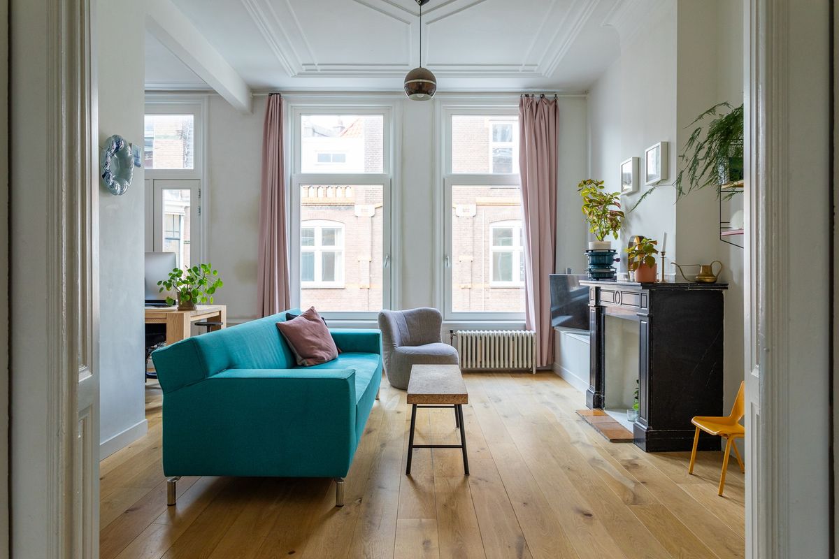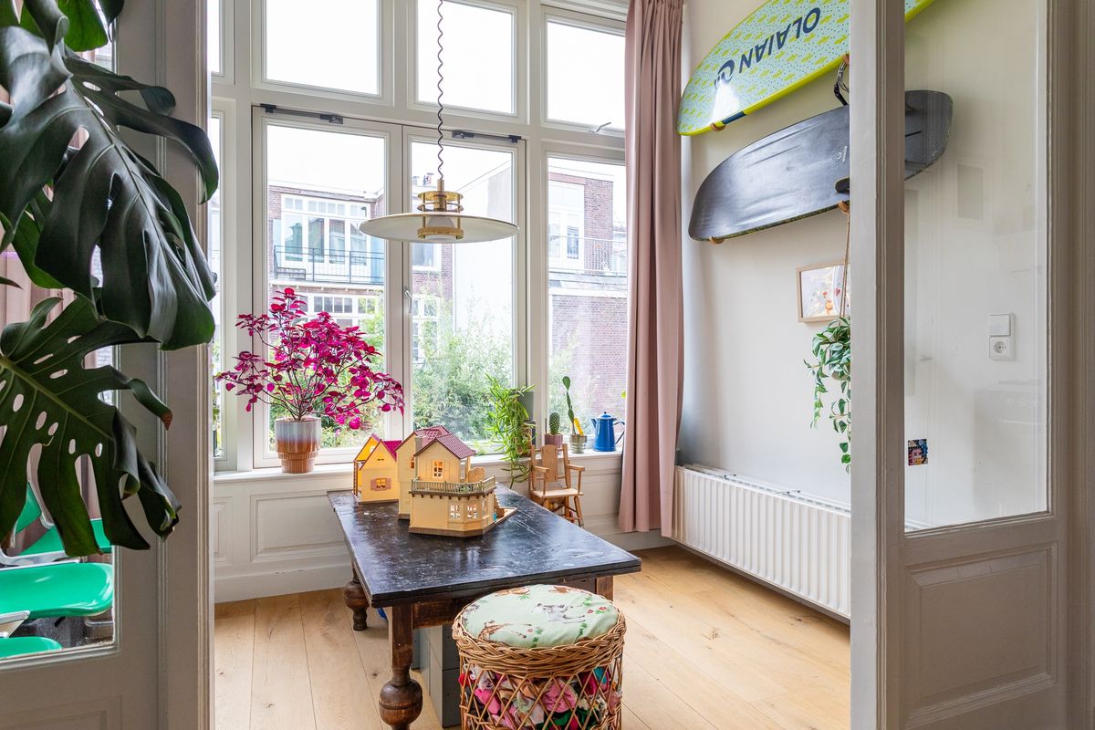 This elegant and generously sized upper maisonette of approx. 186 m² is located on a peaceful, tree-lined street in the beloved Regentessekwartier. Spread over three full residential floors, the home offers four bedrooms, one bathrooms, one laundry room, two sunny south-facing balconies, and a spacious attic. The property is situated on freehold land and holds energy label C.
