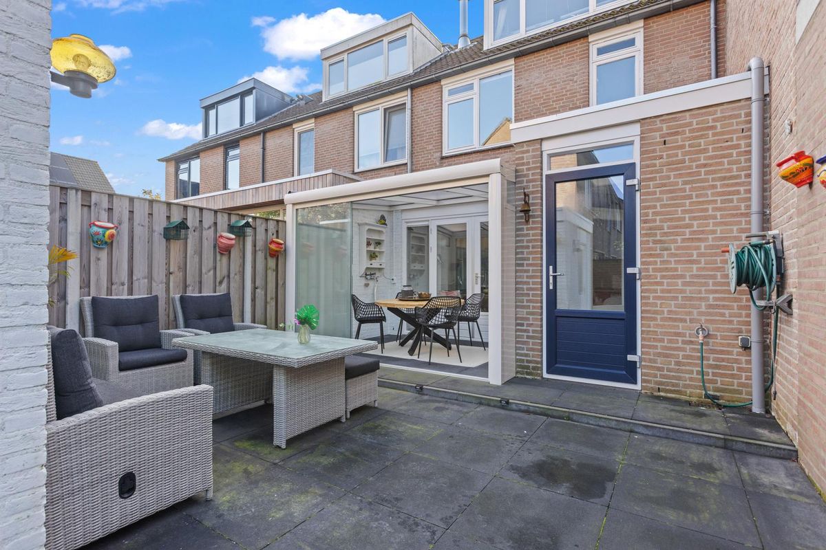 De onderhoudsvrije achtertuin is een fijne plek om te ontspannen. Er is genoeg ruimte voor een loungeset of eettafel en via de achterom, bereikbaar via een afsluitbaar poorthek, kun je gemakkelijk met de fiets naar buiten. Achterin de tuin staat een praktisch schuurtje, ideaal voor het opbergen van fietsen, tuinkussens of gereedschap. Parkeren doe je eenvoudig in de directe omgeving op een van de openbare parkeerplaatsen.