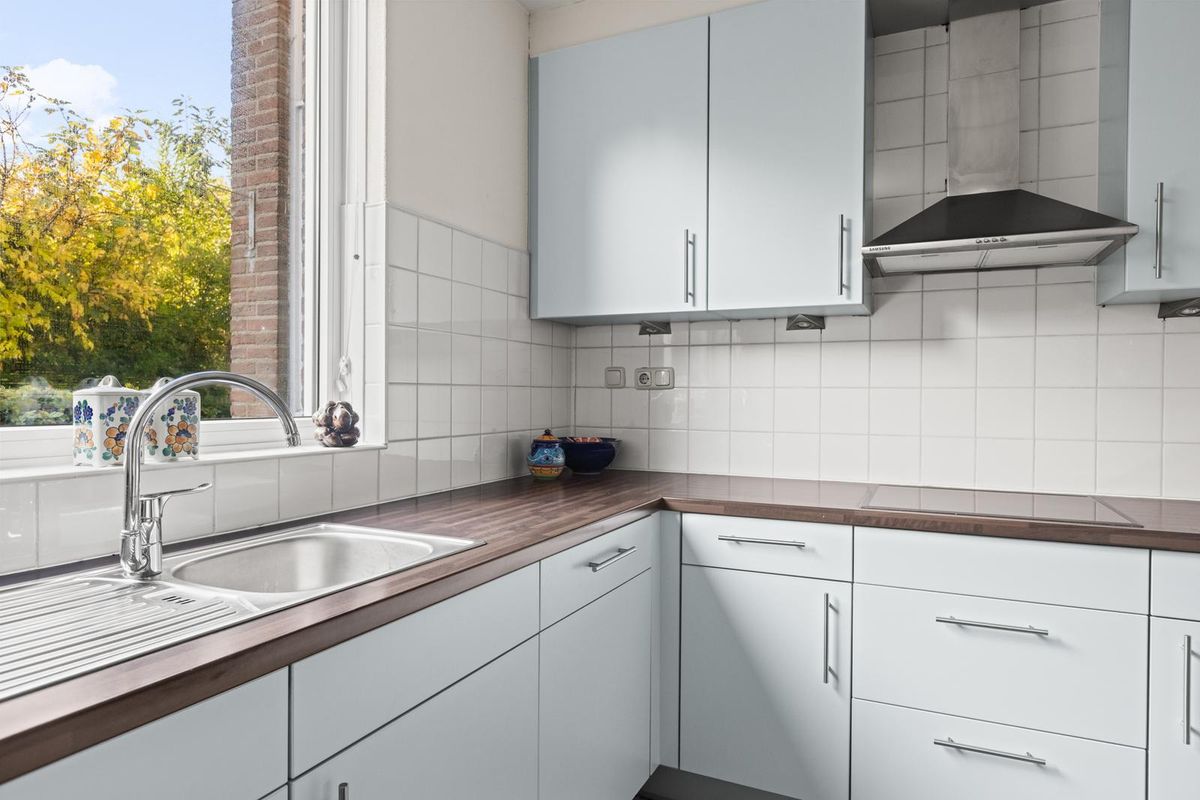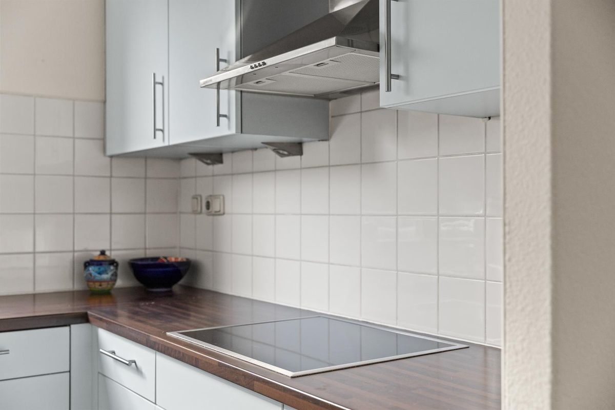 De keuken bevindt zich aan de voorzijde van de woning en is ingericht met een inductiekookplaat met afzuiging en een vaatwasser, perfect voor wie van koken houdt.