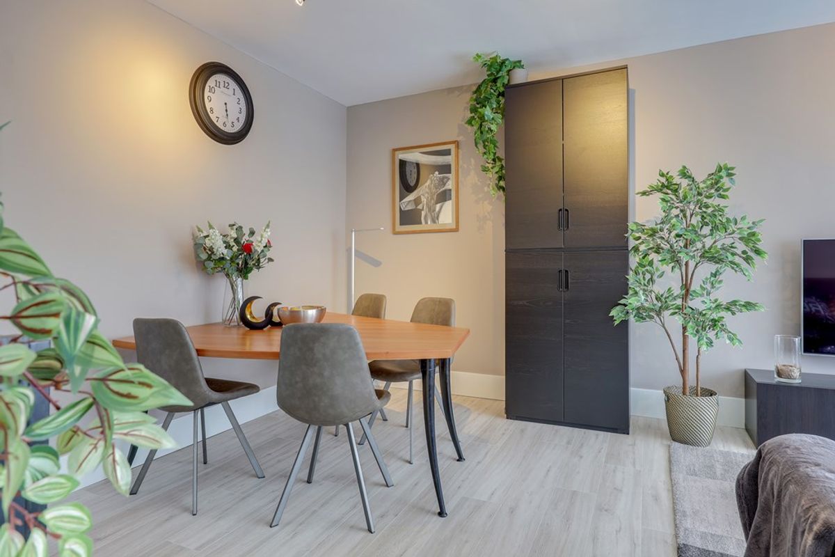 De woonkamer en eethoek zijn volledig ingericht en voorzien van smart tv, internet en strakke wand- en plafondafwerking. Tevens geniet de woonkamer van veel lichtinval en is voorzien van een zonnescherm. Ook geniet u hier van een vrij uitzicht. Vanuit de woonkamer heb je toegang tot het balkon welke gelegen is op het zuiden.