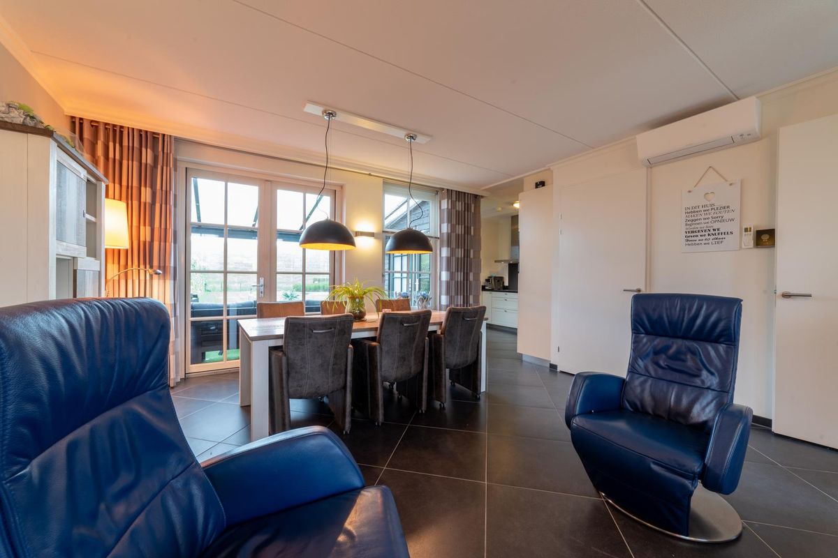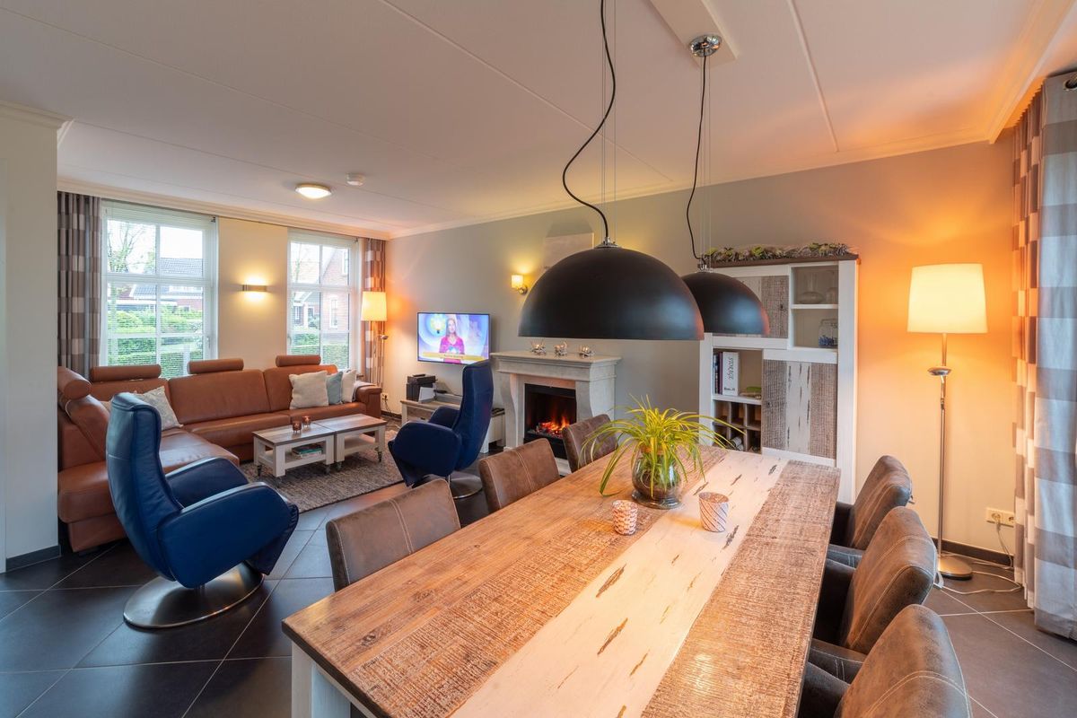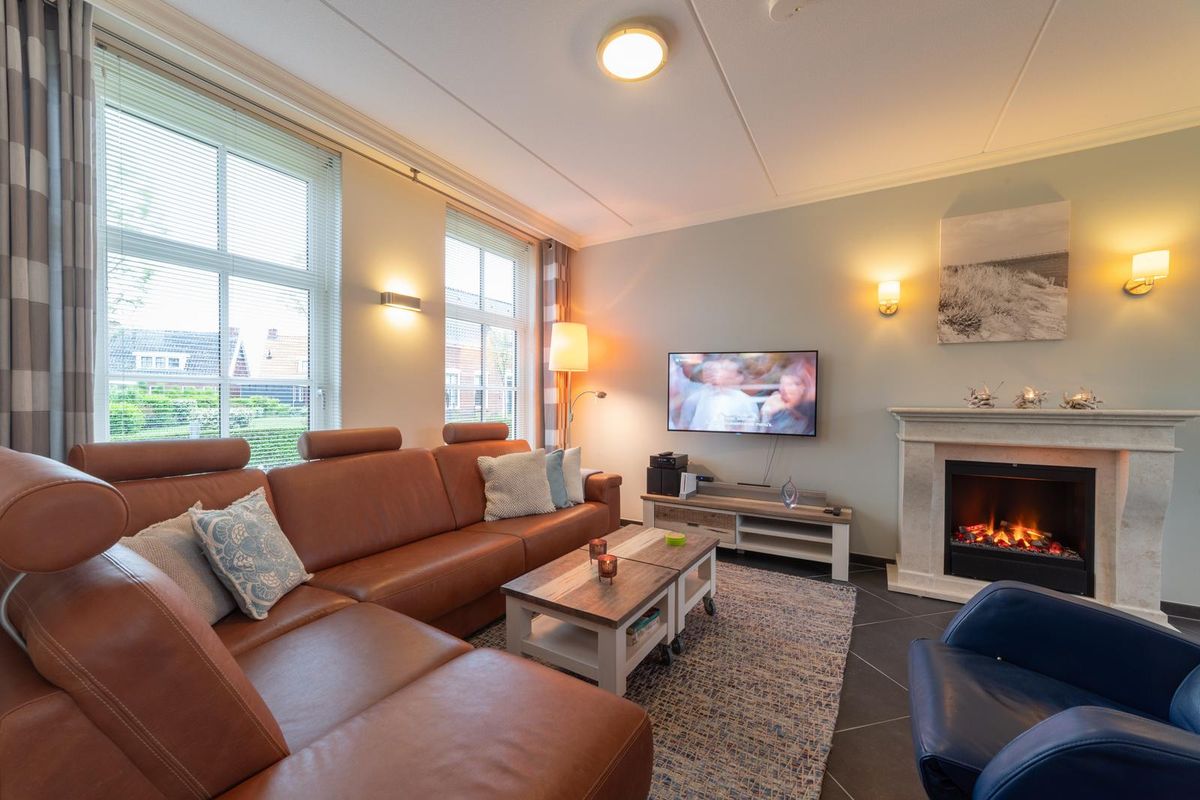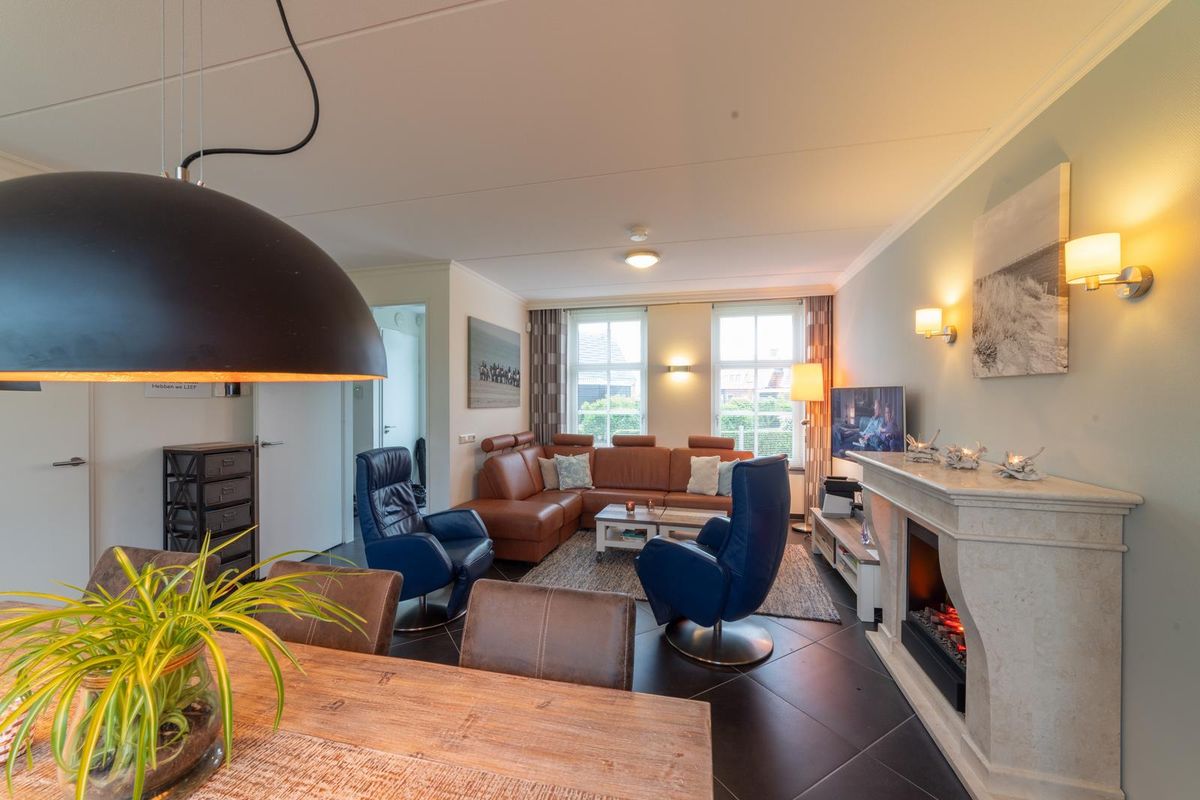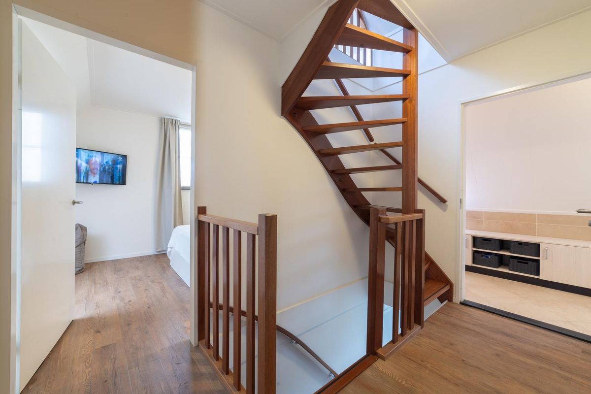 Ruime entree met trap naar de 1e verdieping. Royale woonkamer met sfeervolle haard en luxe L-vormige keuken, inclusief oven, magnetron, vaatwasser, inductiekookplaat en koelkast. Master bedroom met hotelkwaliteit boxspring bedden en televisie, aansluitend een luxe badkamer met grote inloopdouche, sunshower en toilet. Separate bijkeuken met afsluitbare eigenarenkast, koel-vriescombinatie, wasmachine, droger en een gastentoilet. Aan achterzijde van het huis is aan de tuinkant een overdekt terras met veranda met schuifpui voorzien van luxe tuinmeubelen.