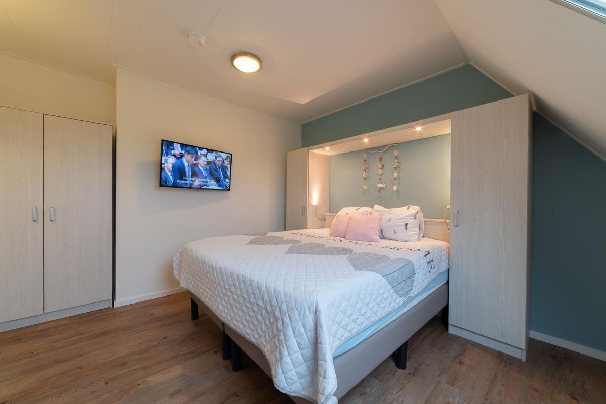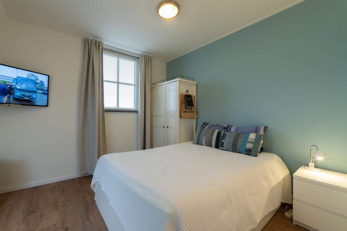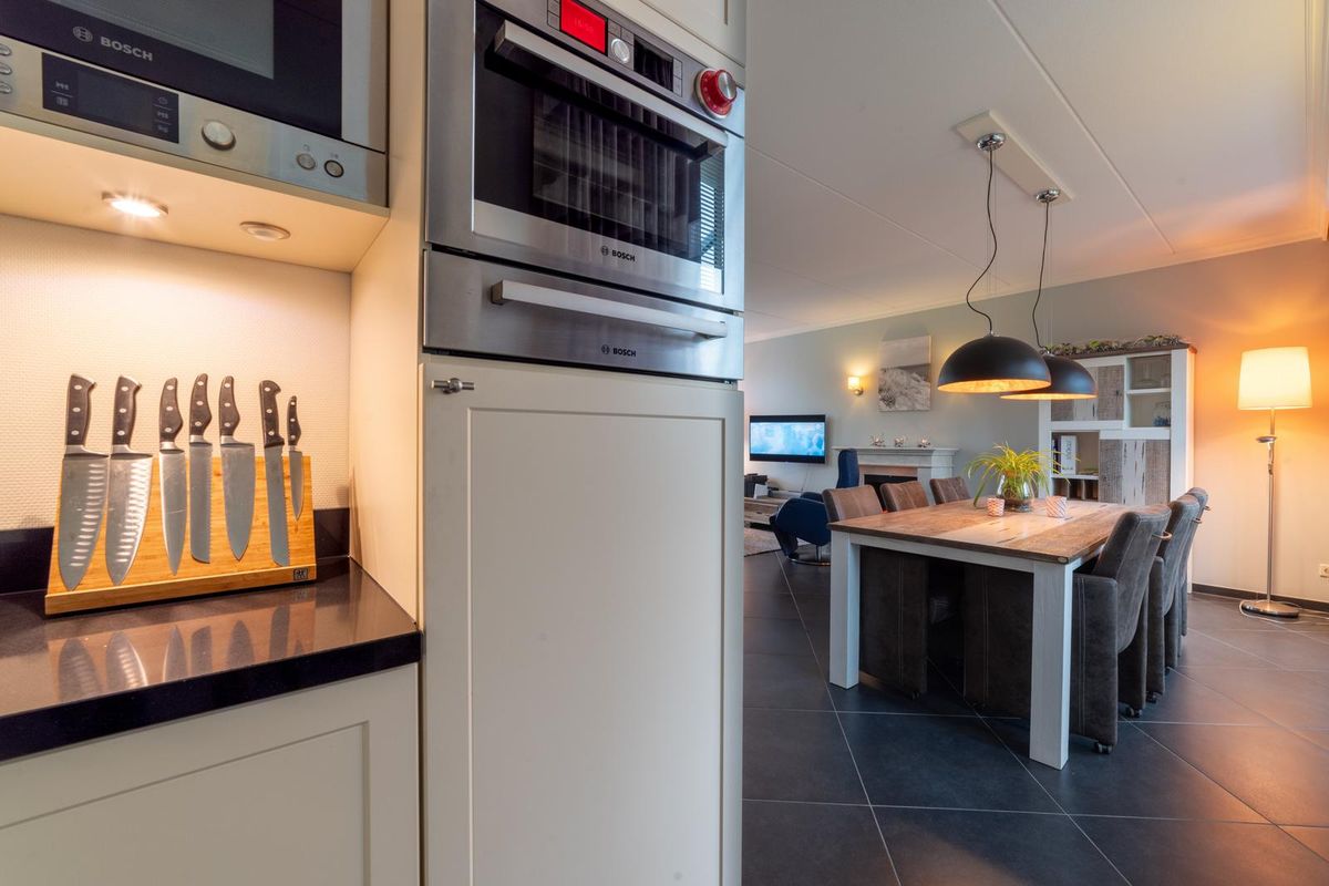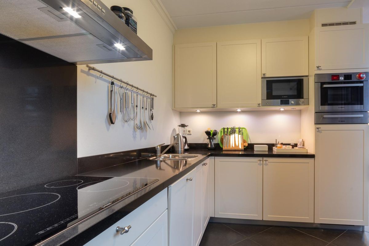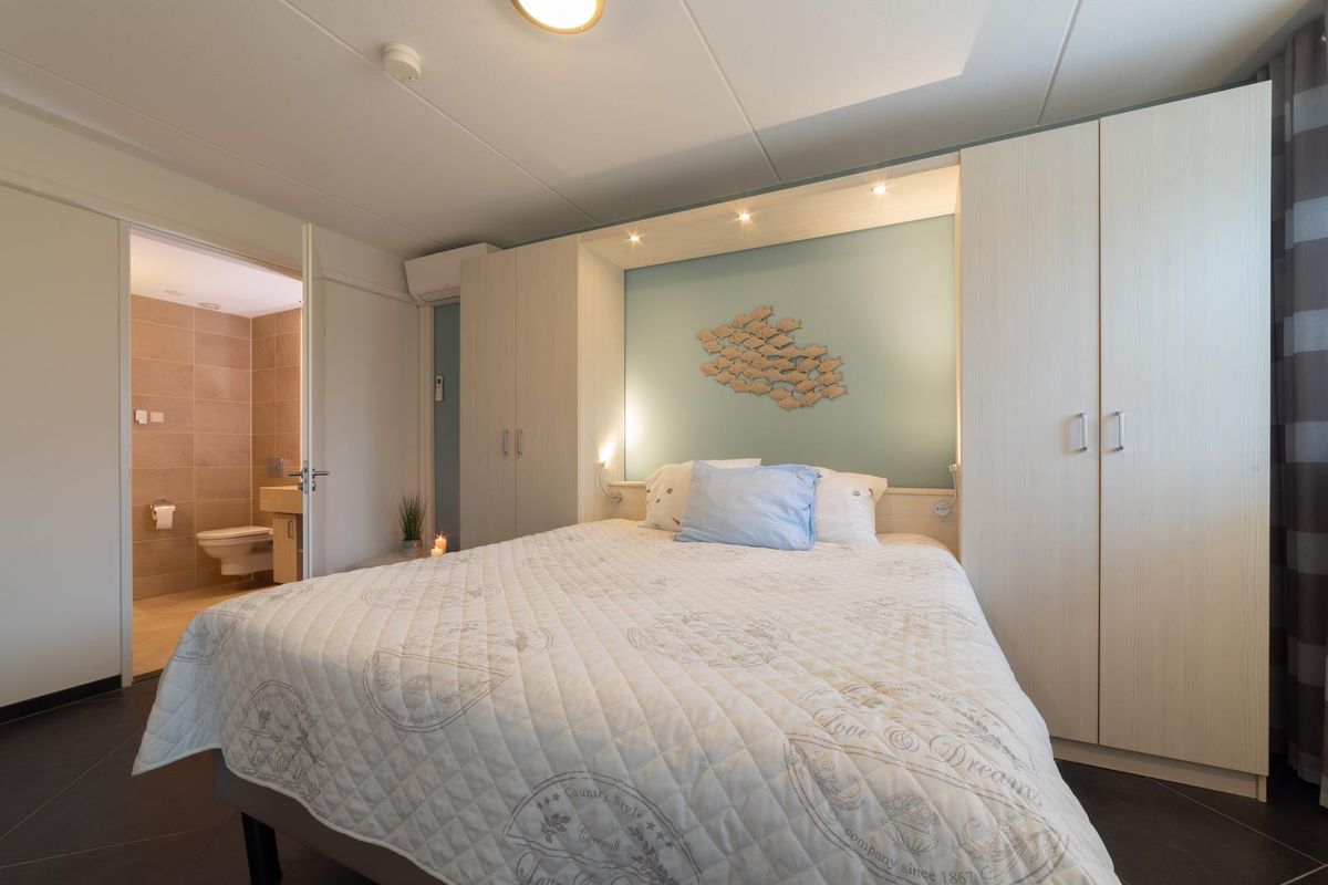 Ruime entree met trap naar de 1e verdieping. Royale woonkamer met sfeervolle haard en luxe L-vormige keuken, inclusief oven, magnetron, vaatwasser, inductiekookplaat en koelkast. Master bedroom met hotelkwaliteit boxspring bedden en televisie, aansluitend een luxe badkamer met grote inloopdouche, sunshower en toilet. Separate bijkeuken met afsluitbare eigenarenkast, koel-vriescombinatie, wasmachine, droger en een gastentoilet. Aan achterzijde van het huis is aan de tuinkant een overdekt terras met veranda met schuifpui voorzien van luxe tuinmeubelen.