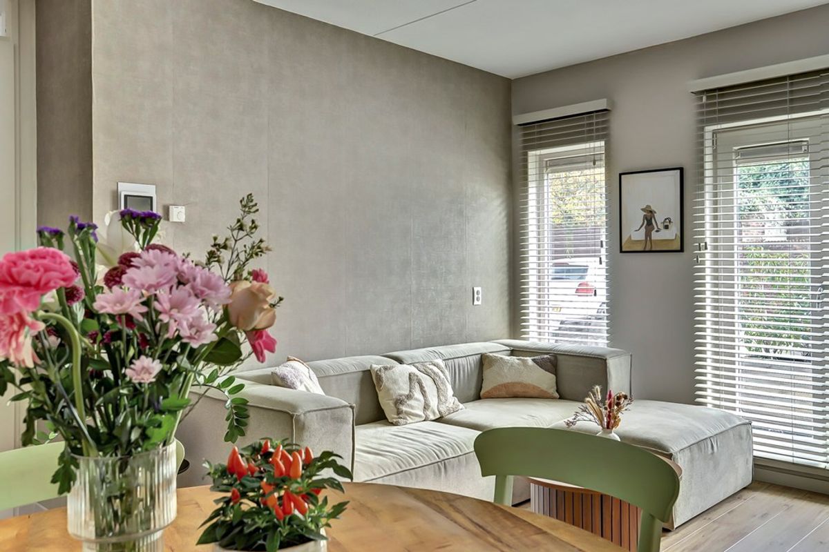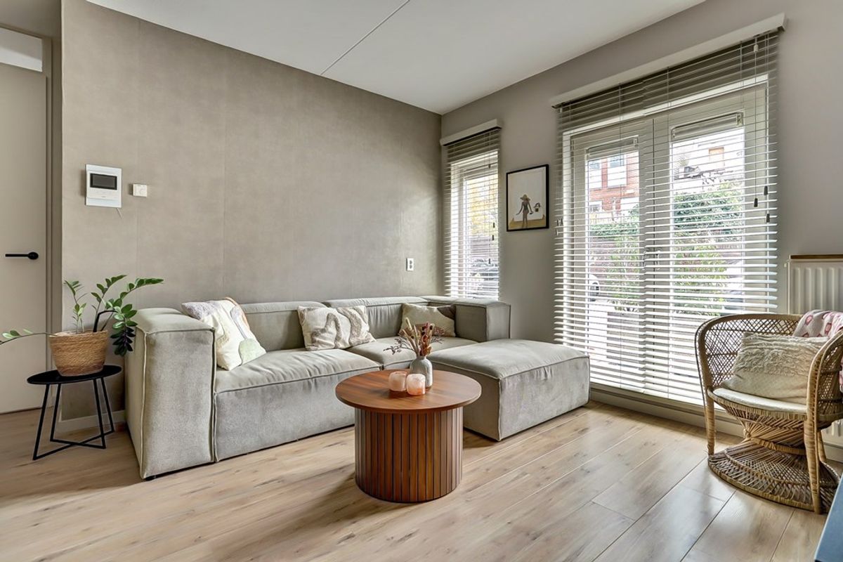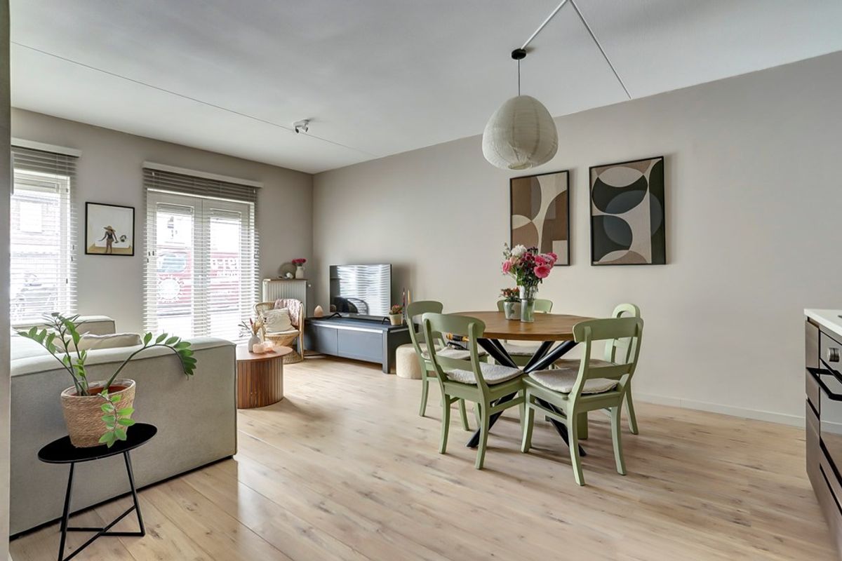 Bij binnenkomst in de ruime woonkamer valt direct de rijke lichtinval op dankzij de brede raampartijen. Deze fijne leefruimte vormt de ideale basis voor gezellige avonden en ontspannen weekends. Vanuit de woonkamer stap je zo het knusse buitenzitje op, waar je geniet van het uitzicht over de rustige binnenplaats.