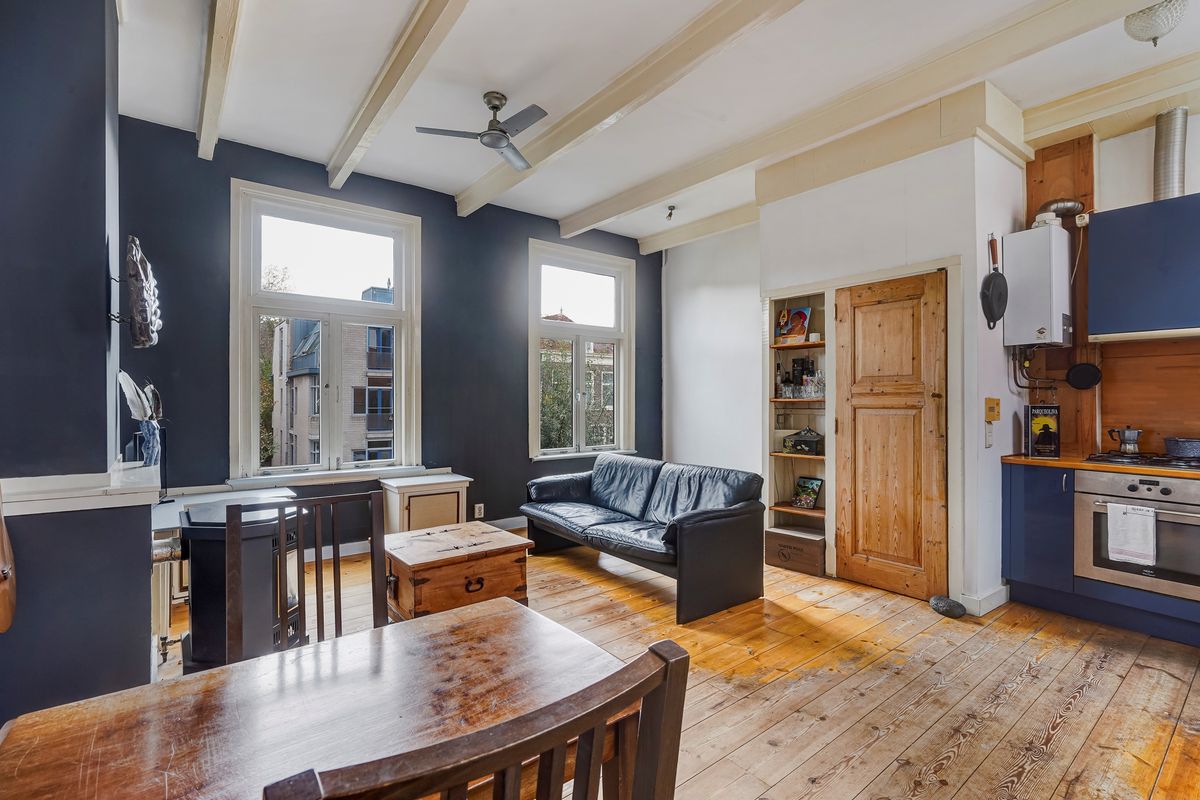 De woning ademt historie, met zijn originele plankenvloeren, hoge balkenplafonds en sfeervolle schouw met gaskachel. Tegelijkertijd biedt het pand volop mogelijkheden om het geheel naar eigen smaak te moderniseren en om te vormen tot een comfortabel, eigentijds stadsappartement.