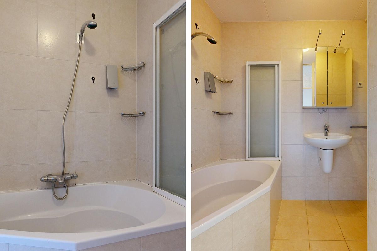 Aan de gang bevindt zich nog een handige wasruimte/berging, een toilet en een moderne badkamer met douche/bad en wastafel. Door de hele woning ligt een fraaie houten vloer.