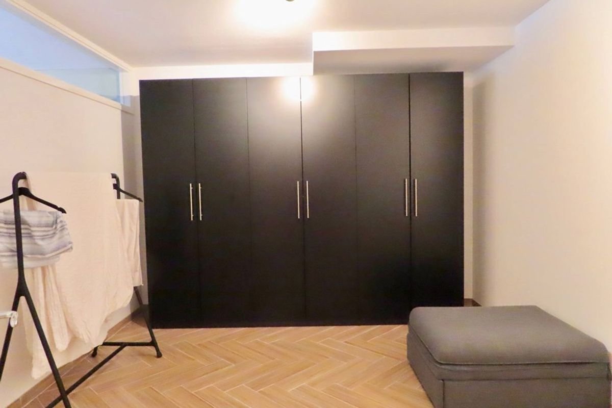 Shared entrance on ground floor with elevator to the first floor. Entrance to the apartment to hallway with toilet and doors to all rooms. Spacious living room, fully furnished in a modern style. Open kitchen with dish washer, oven / microwave, 4 pit gas stove and freezer / fridge. Storage room with shelves.