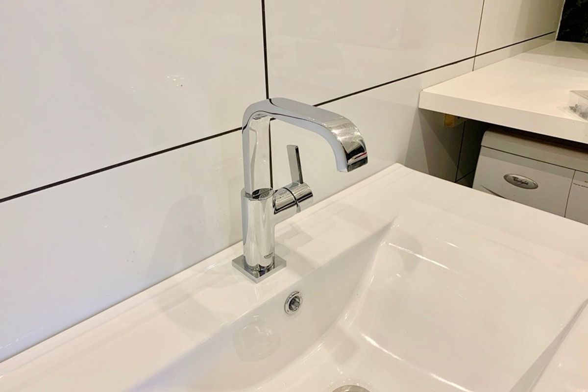 The apartment is located on the first floor of a small complex of apartments. The apartments are accessible via an open porch. Entrance hall with meter cupboard, spacious bright bedroom, luxurious bathroom with a shower, toilet and sink. The bright living room has a beautiful laminate floor and a luxurious open kitchen with various appliances. washing machine and dryer.