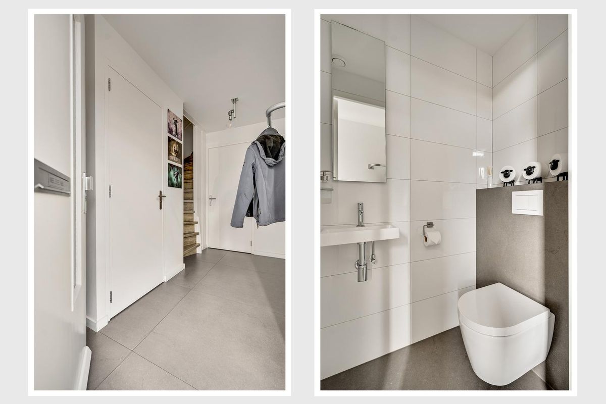 Je parkeert de auto veilig en droog onder de carport en stapt via de entree de woning binnen. In de hal vind je de meterkast en het toilet met fonteintje.