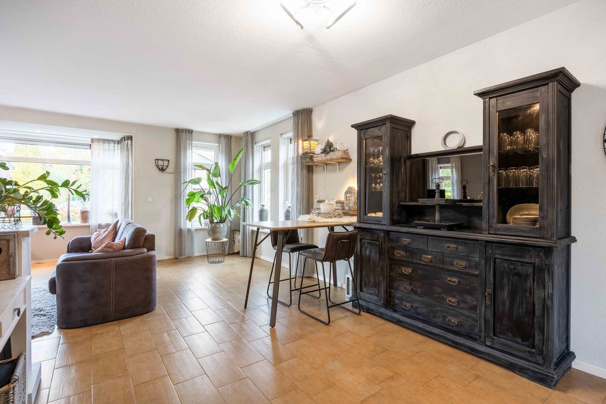 De woonkamer is echt het hart van dit huis. Dankzij de erker en de vele ramen valt het daglicht hier rijkelijk binnen – gezellig! De ruimte is speels ingedeeld, waardoor er genoeg plek is voor een royale zithoek én een grote eettafel. Vanuit de woonkamer loop je door naar de moderne woonkeuken, uitgevoerd in een stijlvolle hoekopstelling. Kookliefhebbers opgelet: aan luxe apparatuur geen gebrek! Denk aan een vaatwasser, koeler, vriezer, Quooker, kookplaat mét kookveldafzuiging én een combi-magnetron. Alle ingrediënten voor een bourgondisch familiediner, pizza-avond of spontane borrel zijn binnen handbereik. Je schuift makkelijk de schuifpui open, zodat binnen en buiten naadloos overlopen. Achter de keuken vind je de praktische bijkeuken. Hier heb je extra bergruimte en de CV-opstelling uit het zicht. Grenzend aan de bijkeuken bevindt zich de garage, die toegankelijk is via een sectionale deur aan de voorzijde én via een loopdeur aan de achterkant. Dus: fietsen, gereedschappen, hobbyprojecten of gewoon je auto – alles vindt hier probleemloos een plekje.