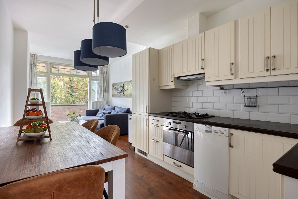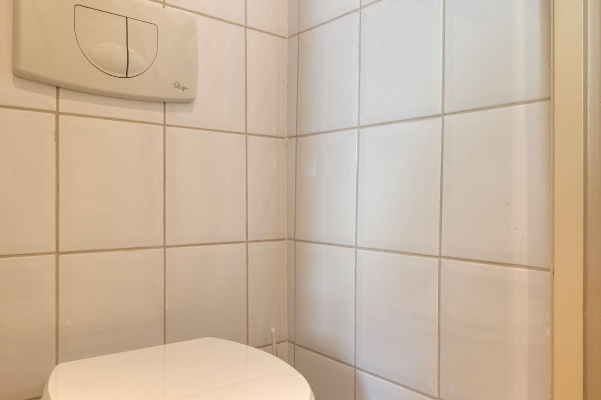 Entree van de woning, hal met toilet en toegang tot de gemoderniseerde badkamer. Lichte woonkamer met open keuken en toegang tot het fijne balkon met uitzicht over diverse tuinen. Slaapkamer met inbouwkast.