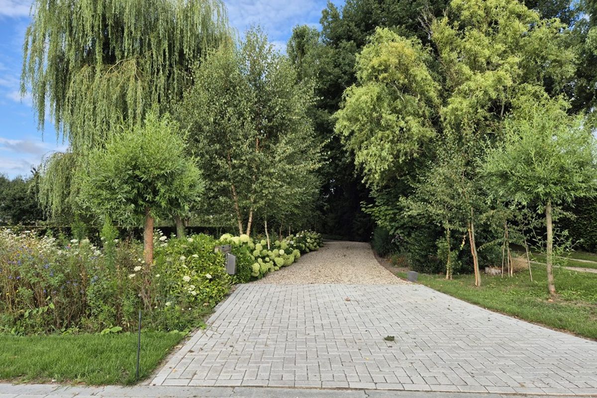 What an entrance! The hall is spacious, bright, and sleekly finished, with a handsome steel staircase with natural stone treads leading up, space for a cloak area, and access to the modern WC and the luxurious bathroom. From here you enter the living room, where the view immediately captures your attention. Large windows and French doors to the garden flood the room with light and frame a lush panorama. The seating area is generously sized, with a cosy fireplace as a focal point. On the other side you’ll find the luxury kitchen with cooking island—clean, modern, and fully fitted with every built-in appliance you could wish for, including a coffee machine, oven/microwave, steam oven, teppanyaki plate, and a Quooker. Cooking here is a joy. The kitchen also has French doors to the garden. The adjoining dining room comfortably accommodates a large table—perfect for long meals with family and friends. There is also a spacious utility room with storage and laundry connections. Everything is finished in warm, neutral tones with an eye for detail.