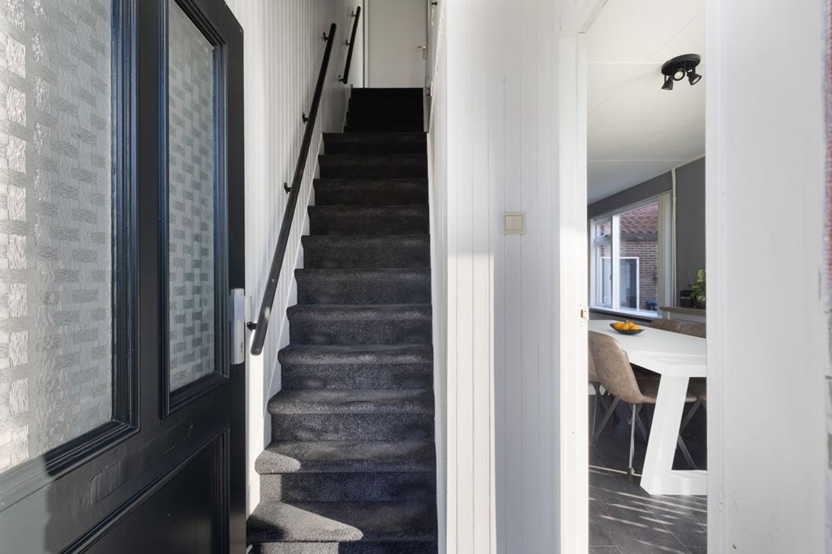 Je komt binnen via de entree met trapopgang en toegang tot de woonkamer. Vanuit de hal stap je de woonkamer binnen: een sfeervolle ruimte met de eethoek aan de voorzijde en de zitkamer centraal in het huis. Door de ligging van de ramen is er prettig daglicht en een fijn uitzicht op de dijk. De gesloten keuken bevindt zich aan de achterzijde en is eenvoudig, maar verzorgd ingericht en voorzien van diverse inbouwapparatuur. Vanuit de keuken bereik je de badkamer, die is uitgerust met een douche, wastafel en toilet. Aansluitend ligt een portaal/bijkeuken met opstelplaats voor de wasapparatuur en toegang tot de achterzijde van de woning. In een separate kast vind je de CV opstelling.