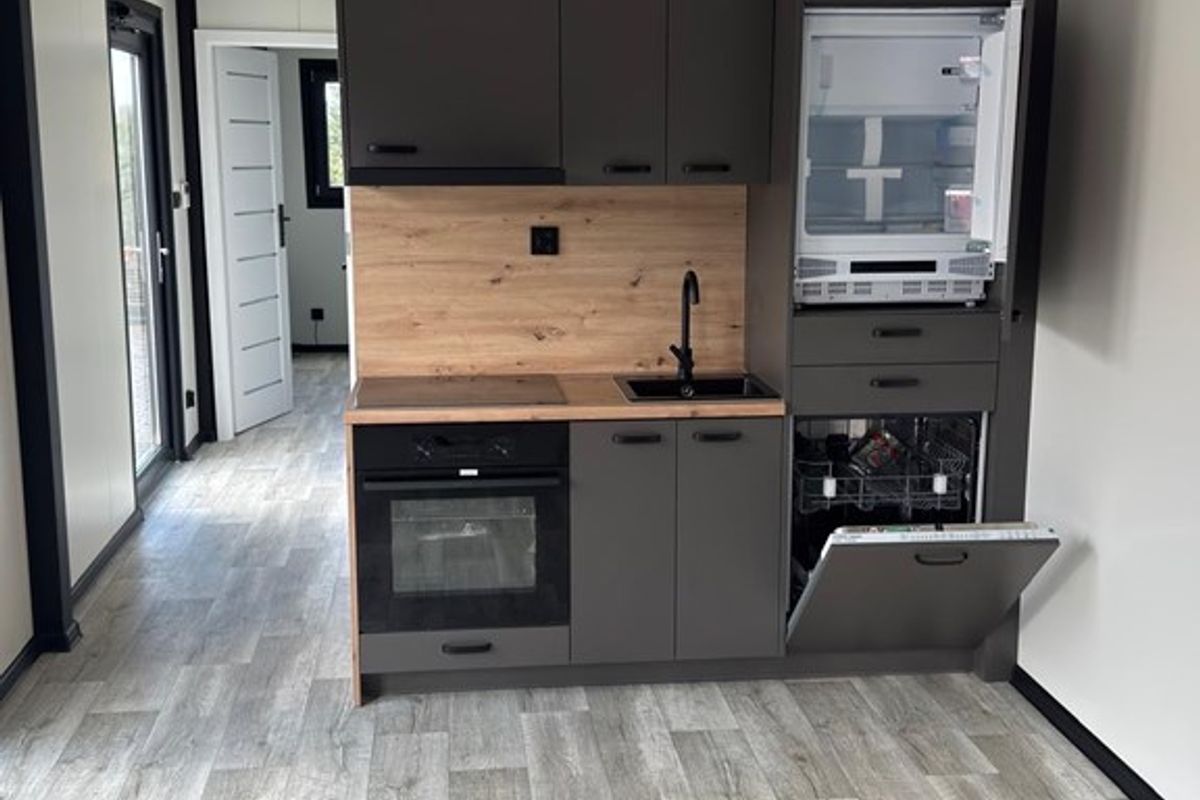 TE Koop : Mobiele woning ,bestaande uit woonkamer met tuindeuren ,inbouwkeuken met vaatwasser ,koelkast kookplaat, afzuigkap ,een slaapkamer ,badkamer met douche ,toilet en wastafel totaal in perfecte staat . (verkoper wil voor 1500 euro inclusief BTW de mobiele wagen brengen op een adres in noord Limburg .