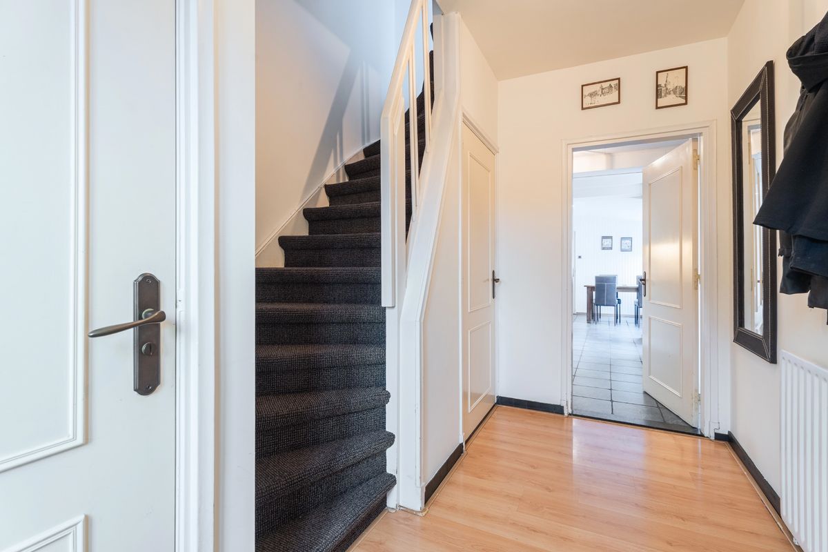 Middels de trapopgang in de hal bereik je de overloop, slaapkamers en badkamer op de eerste verdieping.