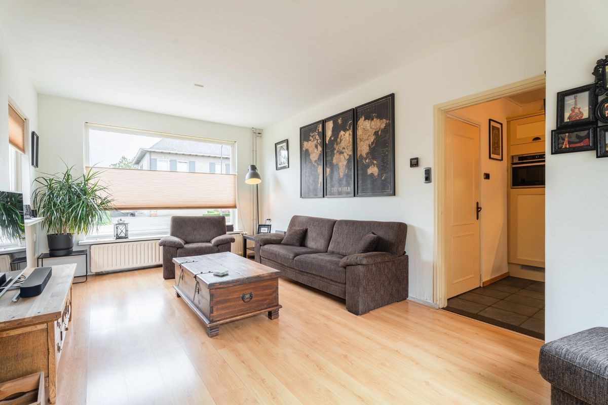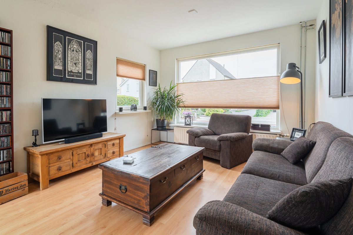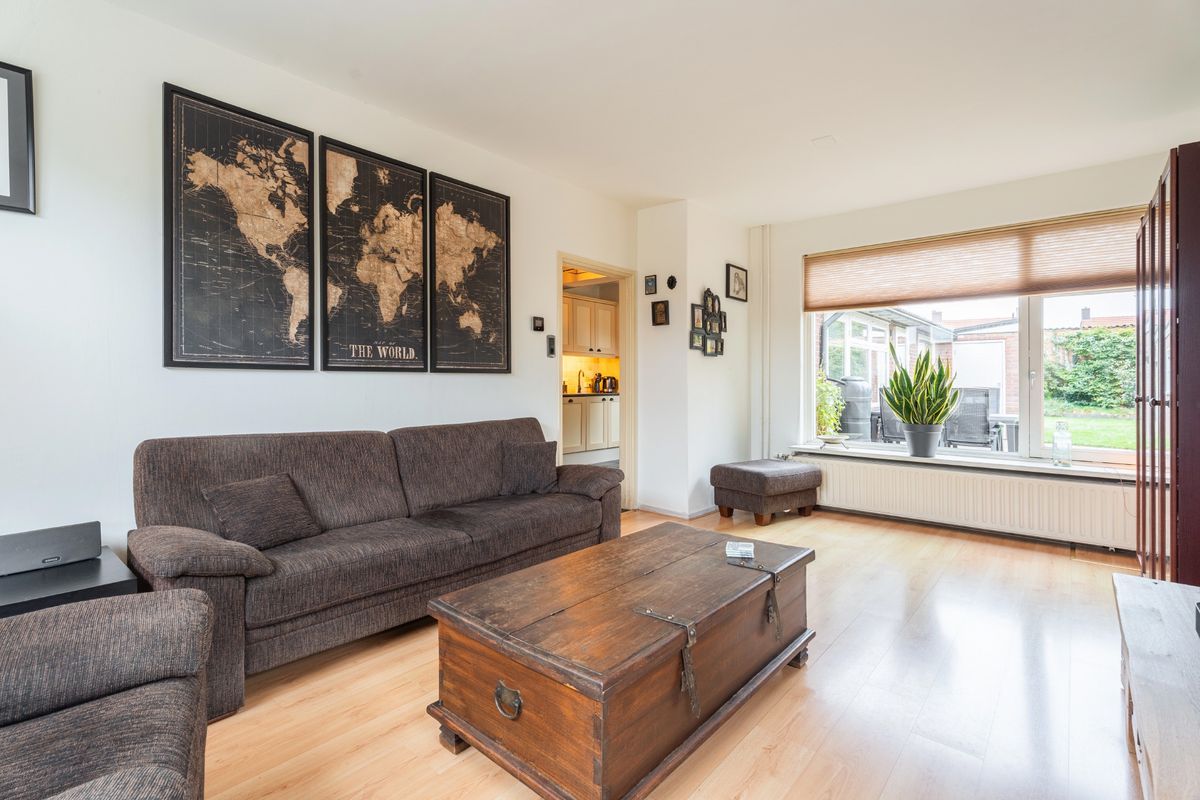 De woonkamer is voorzien van een laminaatvloer en heeft een semi open verbinding met de keuken. Door de grote raampartijen aan zowel de voorzijde, zijkant- als achterzijde komt er veel natuurlijke daglichttoetreding de ruimte binnen.
