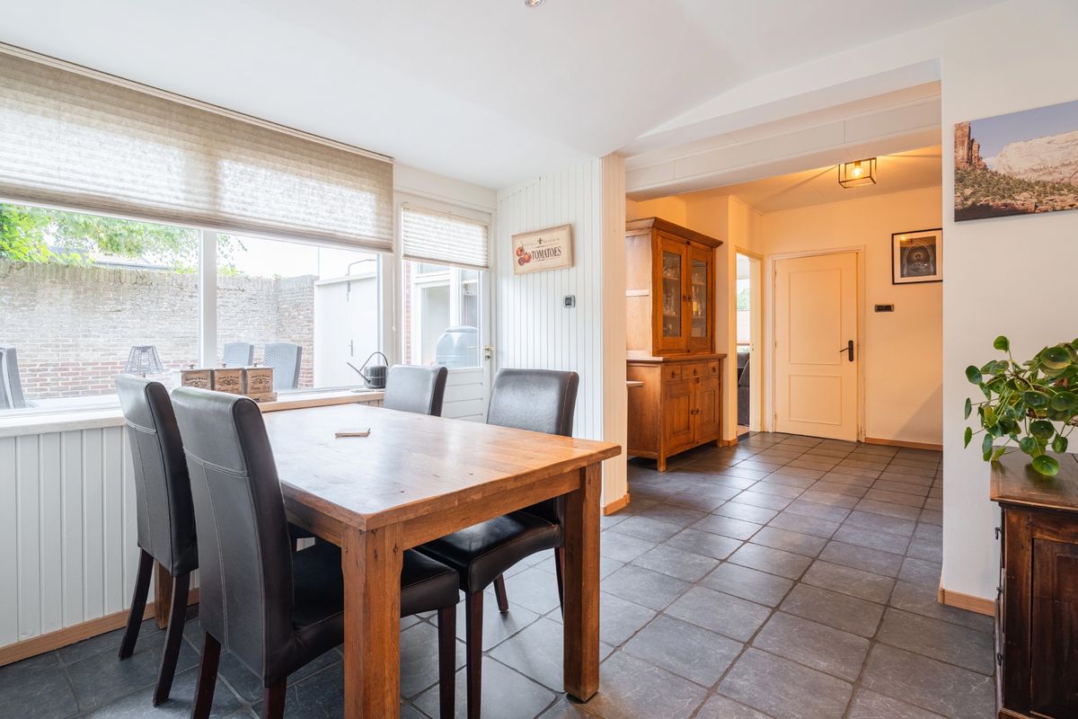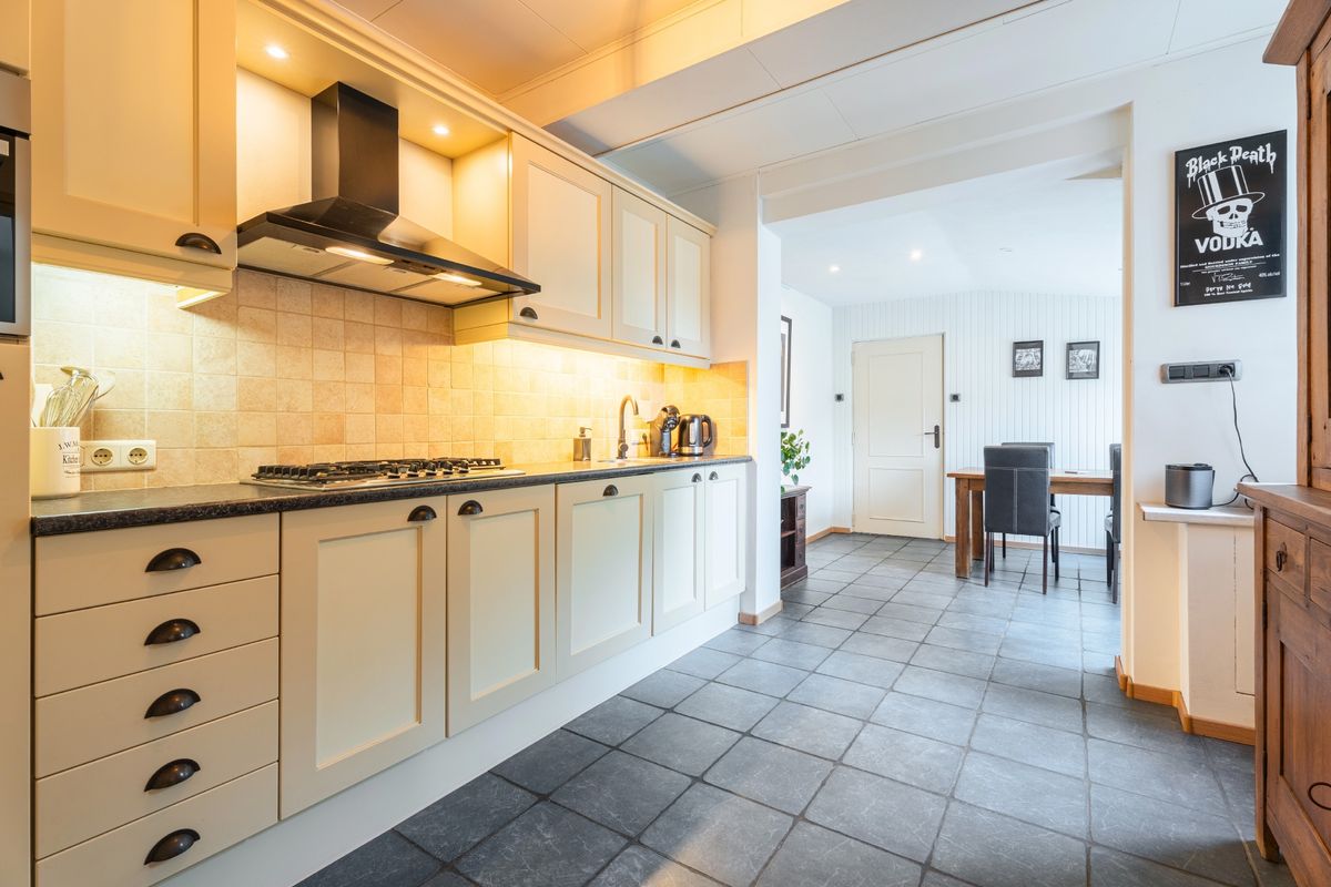 De woonkeuken is geplaatst in een rechte opstelling met diverse kastruimte en lades. De keuken is voorzien van een onderhoudsvriendelijke tegelvloer, een 5-pits gaskookplaat, een afzuigkap, een vaatwasser, een koelkast en een combi-oven. In het eetgedeelte heb je plek om een mooie eettafel te zetten en heb je via een tuindeur direct toegang tot het terras.