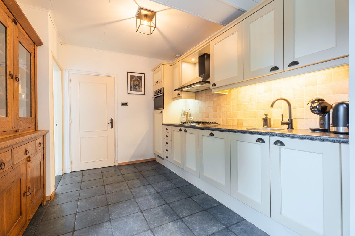 Aansluitend heb je toegang tot een ruime bijkeuken met aansluitingen voor de wasmachine en een tuindeur.