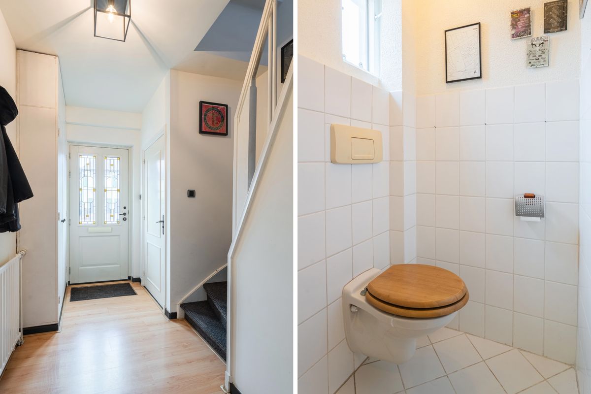 Via de onderhoudsvriendelijke voortuin met oprit bereik je de entree van de woning. De hal is voorzien van een meterkast, een toiletruimte, een trapopgang, een trapkast en biedt direct toegang tot de leefruimtes.