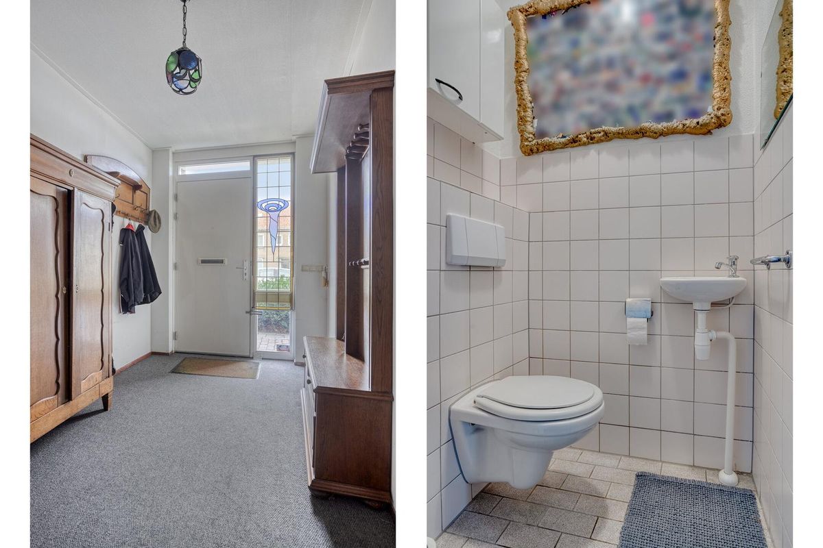 Via de entree aan de voorkant van de woning kom je in de ruime hal waar onder andere de meterkast is(2 aardlekschakelaars, 9 lichtgroepen, 1 krachtgroep, beltrafo) en de betegelde toiletruimte met zwevend closet en fonteintje. Vanuit de hal ga je naar de woonkamer/openkeuken.