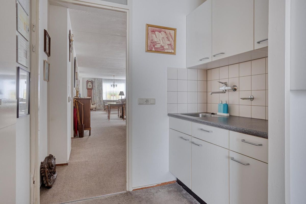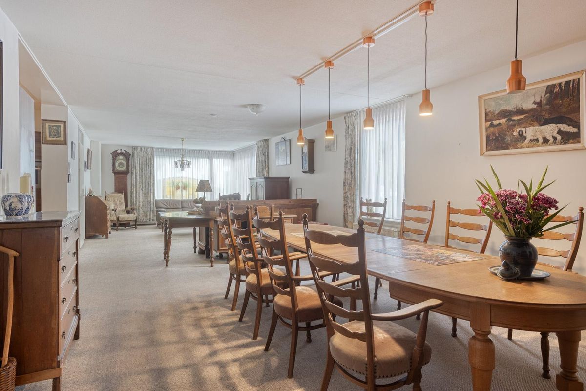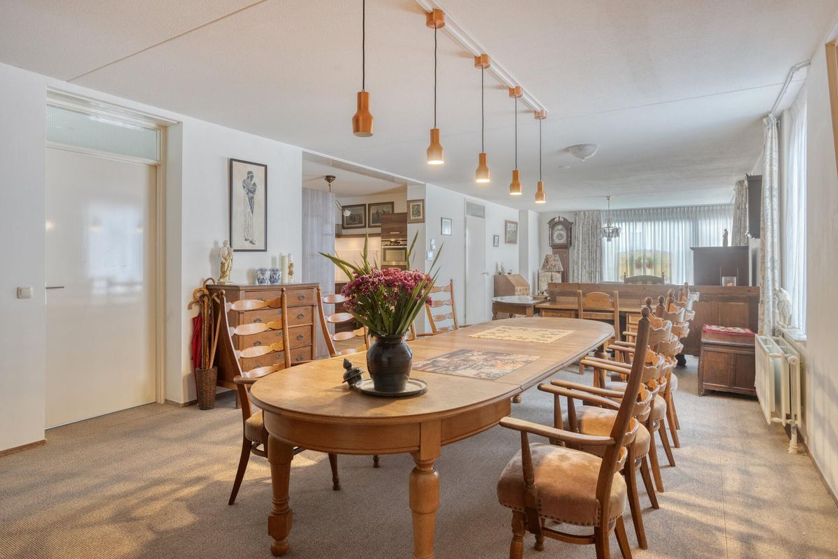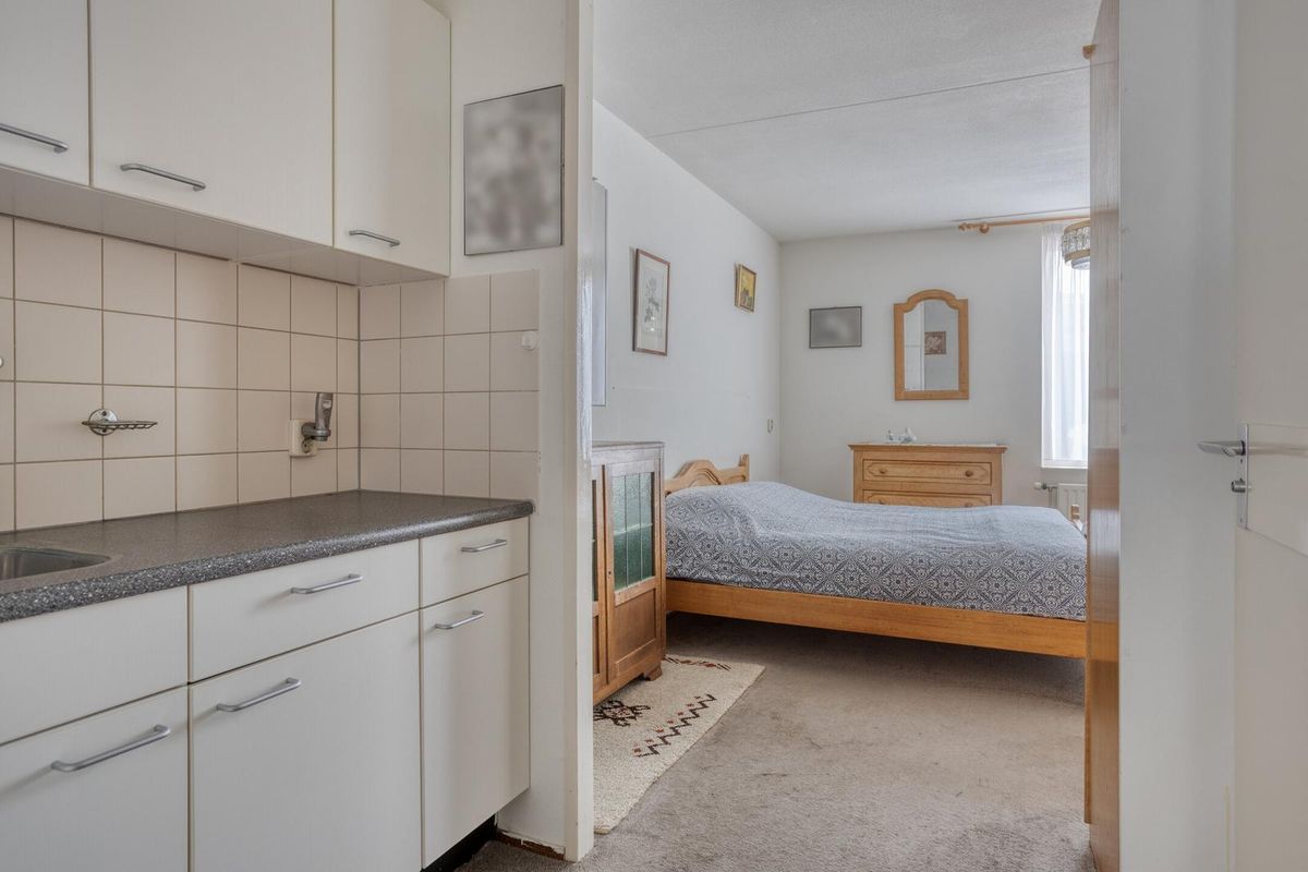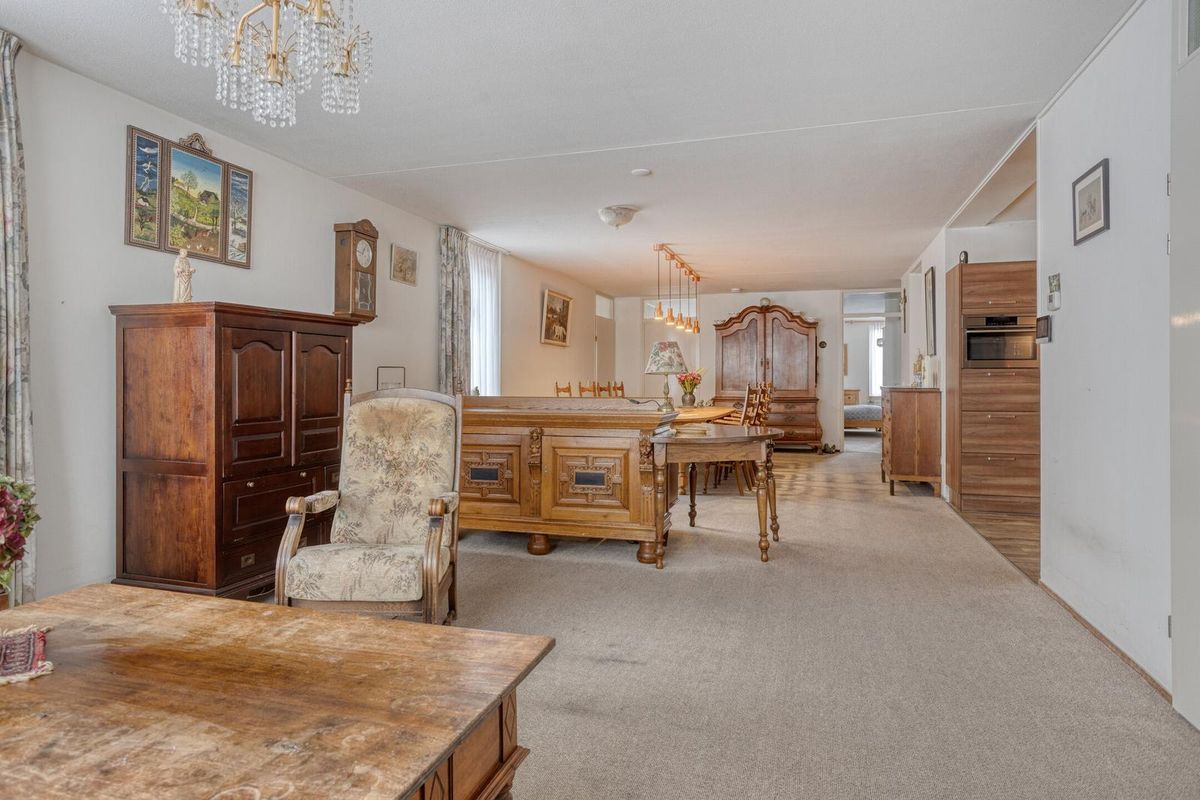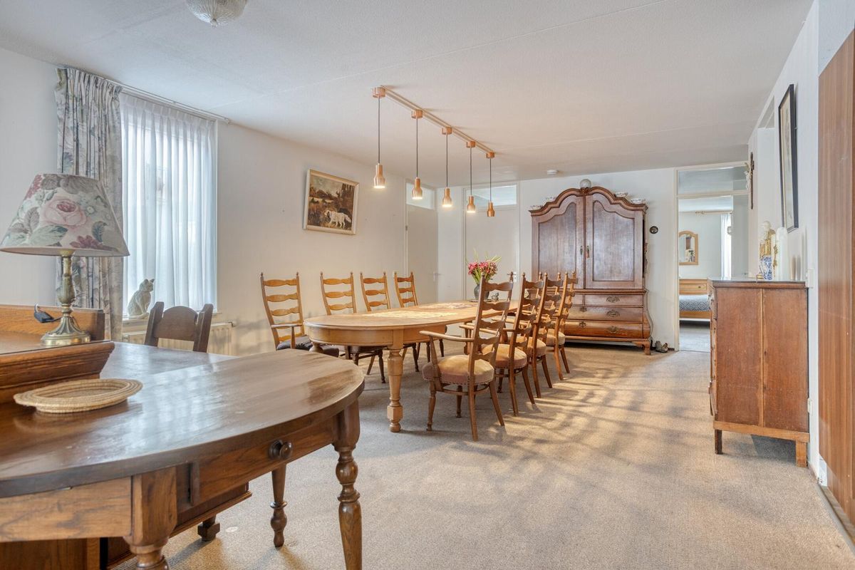 Het grote hoekraam aan de voorzijde van de woning als ook het zijraam maken de kamer heerlijk licht. Het is een ruime kamer van ruim 50 m². De ruimte biedt veel mogelijkheden voor een indeling van de eet- en zitkamer naar eigen wensen. Achter in de woonkamer zijn de toegangsdeuren naar de twee slaapkamers en bijkeuken. Hier is ook de entree naar het halletje aan de achterzijde van de woning.