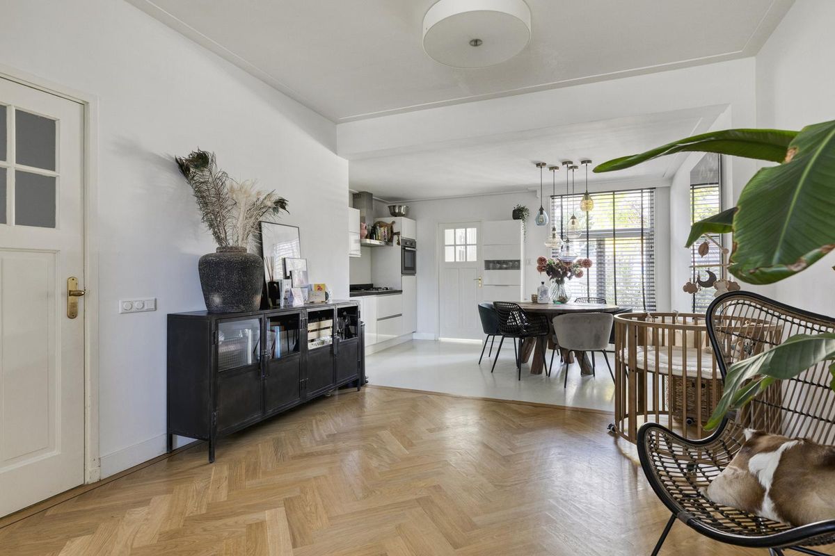 De begane grond is dankzij de uitbouw heerlijk ruim en biedt instapklaar woonplezier. Aan de achterzijde vind je een moderne open keuken, compleet met alle gemakken, terwijl de woonkamer met zijn chique vloer zorgt voor een stijlvolle, verfijnde sfeer.