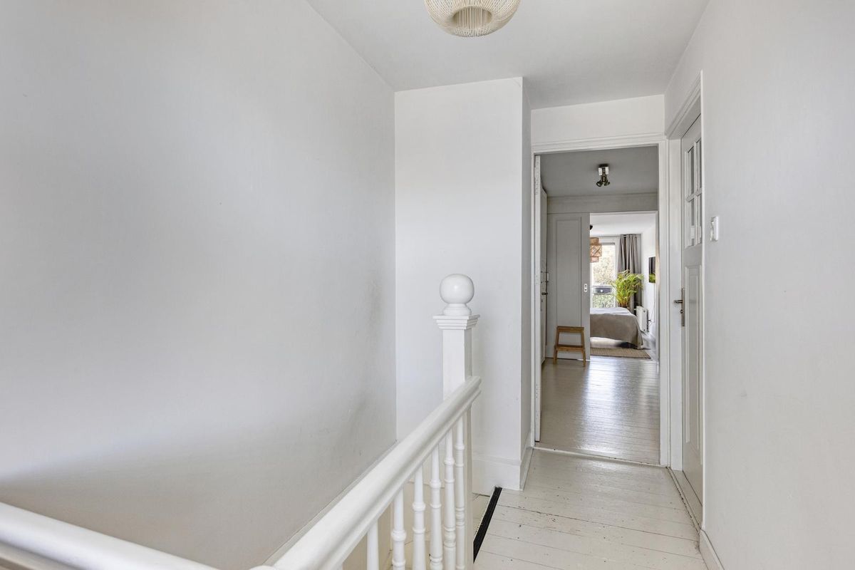 Vanaf de overloop kijk je uit over een plek die voelt als het hart van de bovenverdieping. Hier heb je toegang tot twee ruime slaapkamers, een kinderkamer of kastenkamer en de royale badkamer.