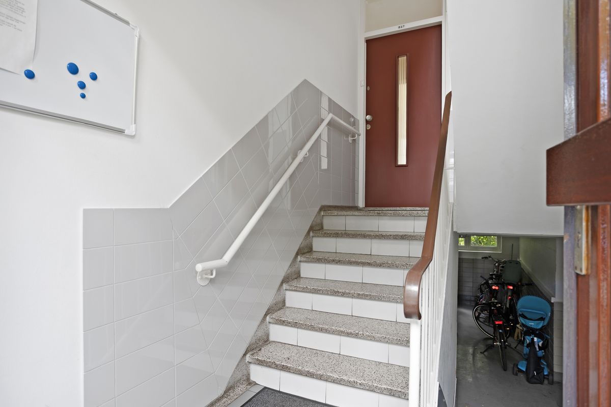 De gesloten portiek biedt toegang tot de bergingen onderin het gebouw en de entree van de woning. De hal in de woning is voorzien van diverse inbouwkasten, de meterkast en het toilet. De twee slaapkamers bevinden zich aan de achterzijde van de woning met uitzicht op het grasveld en via de moderne en goed onderhouden keuken, natuurlijk voorzien van diverse inbouwapparatuur, is er toegang tot het balkon aan de zuidoost zijde. Via de grootste slaapkamer is er toegang tot de badkamer met douche en wastafelmeubel.
