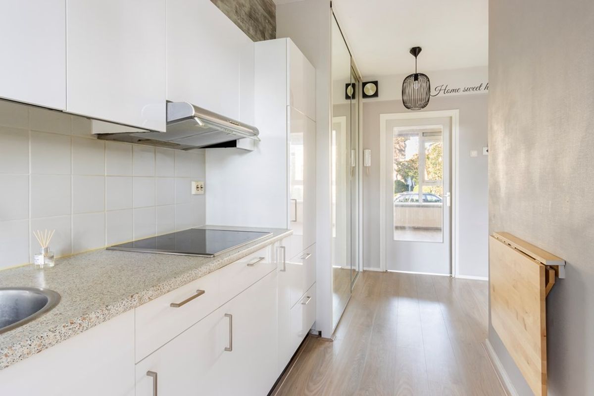 Entree, Keuken v.v. inductiekookplaat, vaatwasser en koelkast. Hal met cv-ketel en wasmachineaansluiting en toegang tot de badkamer v.v. douche, wastafel, toilet, design radiator, wasmachineaansluitingen, woonkamer met openslaande ramen, slaapkamer,