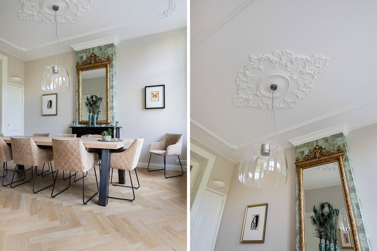 De woning is in 2014 volledig gerenoveerd, waarbij originele elementen zoals de en-suite tussen de eetkamer en keuken, de servieskast in de eetkamer, de trapspijlen en leuningen, en het balkon aan de voorzijde bewaard zijn gebleven. De ornamenten aan de hoge plafonds zijn in oude stijl hersteld en het gebruik van monumentenglas in de ramen zorgt voor behoud van de historische uitstraling. De kozijnen en deuren en ramen zijn in de oorspronkelijke stijl teruggebracht. Het gehele appartement is voorzien van houten vloeren. De staat van onderhoud is uitstekend.