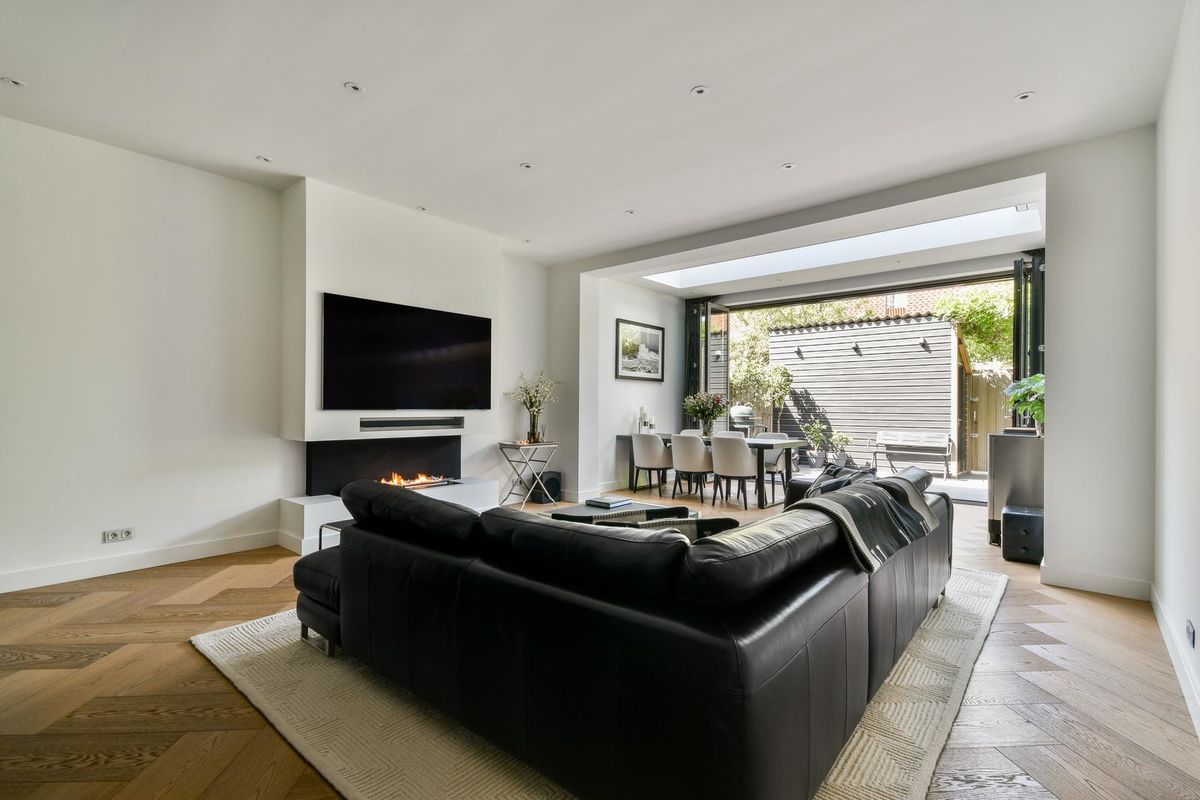 De tuingerichte woonkamer valt direct op door het speels vormgegeven plafond dat oploopt tot maar liefst 3,30 meter hoogte. De hoge raampartijen zorgen voor een overvloed aan daglicht en geven de ruimte een warme sfeer. De open haard op bio-ethanol voegt daar nog een extra uitnodigend element aan toe. Dankzij de royale uitbouw met stijlvolle harmonicadeuren geniet u van een prachtige verbinding tussen binnen en buiten. Zo loopt u vanuit de woonkamer zó de zonnige achtertuin in.