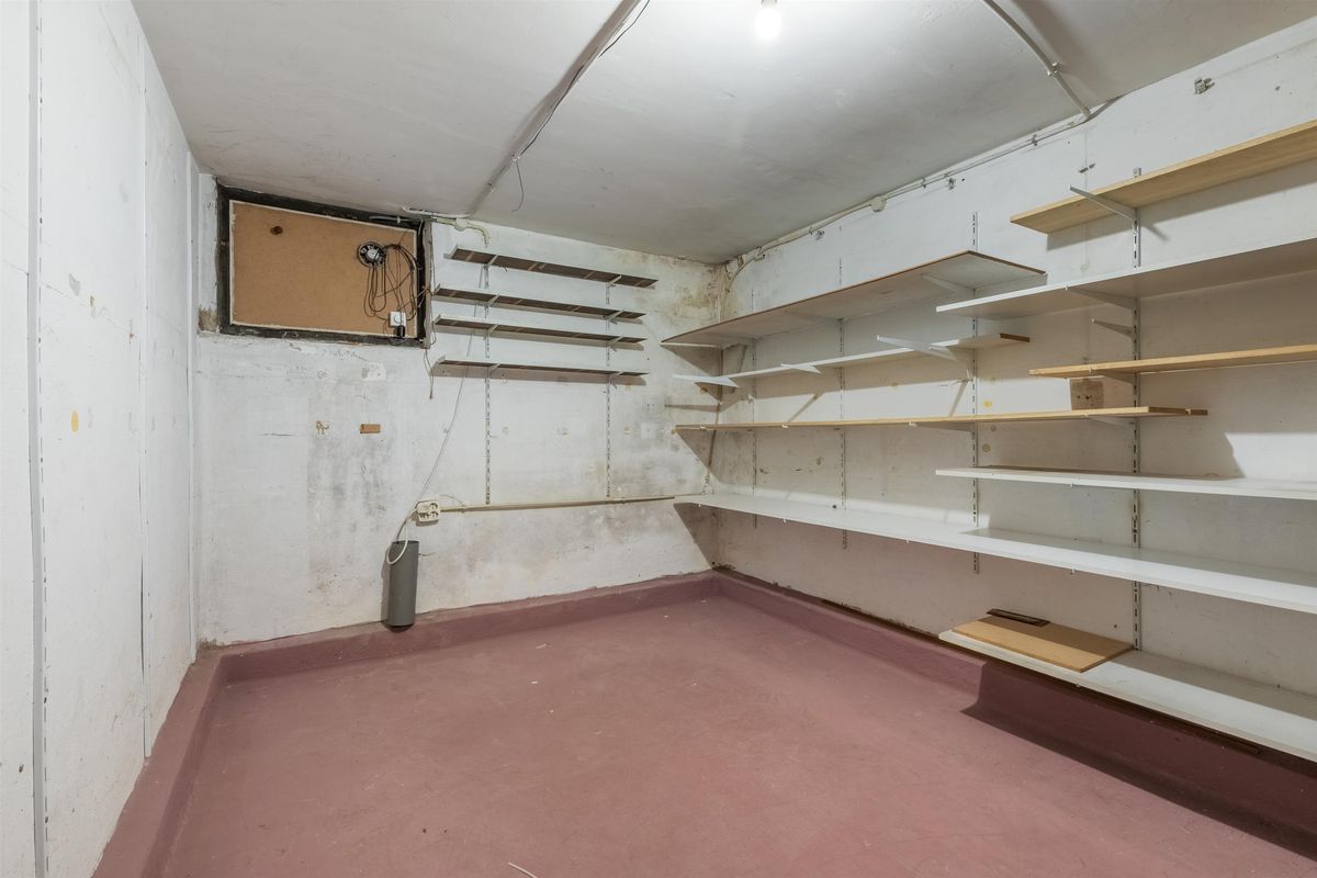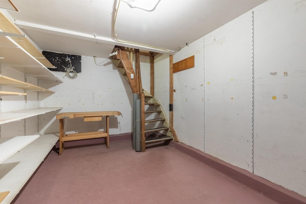 Bij binnenkomst bevindt zich aan de rechterzijde de garderobe en de eerste slaapkamer, terwijl aan de linkerkant een separaat toilet, de tweede slaapkamer en de trap naar het souterrain te vinden zijn. Vanuit de gang loop je door naar de centrale hal, die toegang biedt tot de sfeervolle woonkamer met aangrenzende werk- of slaapkamer, de badkamer (voorzien van tweede toilet) en een extra slaapkamer aan de linkerzijde. De halfopen woonkeuken vormt het hart van de woning en kijkt uit op de zonnige achtertuin, die ook bereikbaar is vanuit twee slaapkamers aan de noordzijde. De tuin beschikt over een schuur, ideaal voor opslag van tuinmeubilair of gereedschap. Via de centrale lift in het gebouw is bovendien de zolderverdieping bereikbaar, waar zich nog een extra kamer of praktische bergruimte bevindt. Dankzij de ruime opzet en logische indeling biedt de woning volop mogelijkheden voor een persoonlijke invulling.