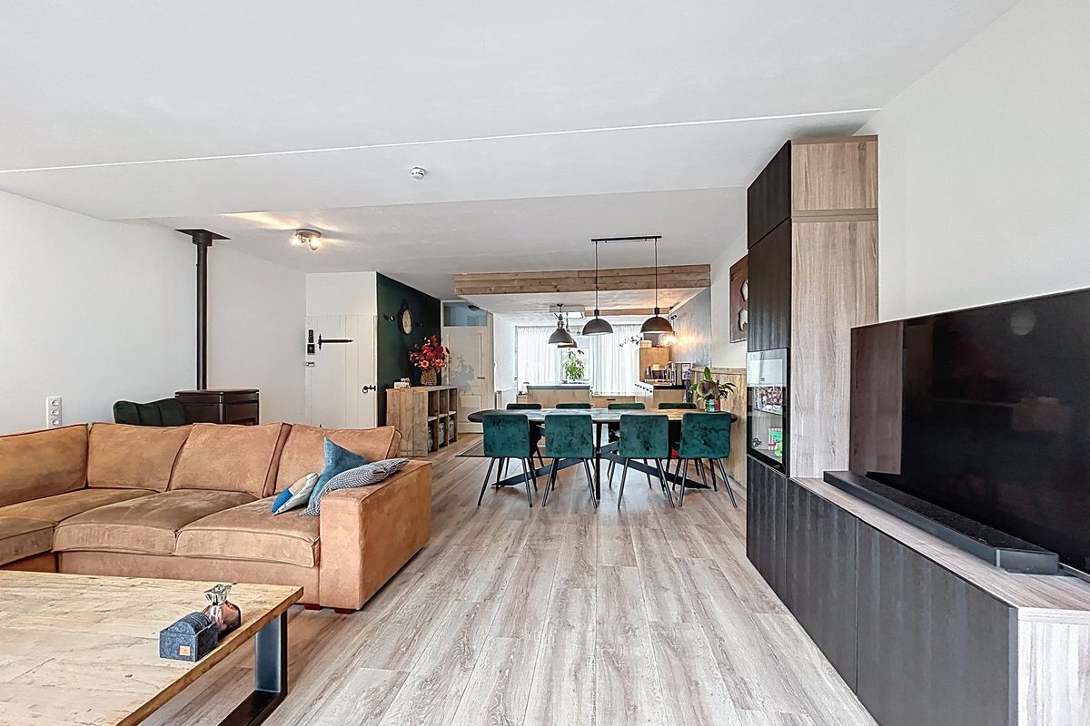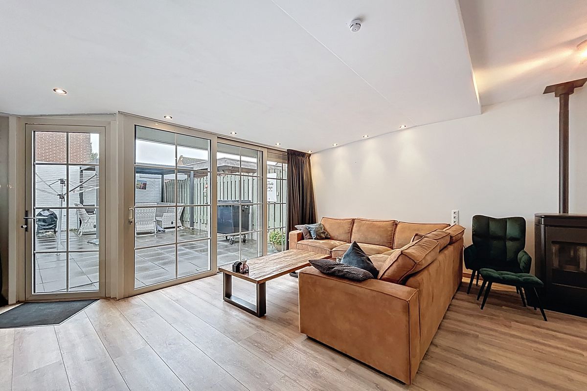 Het belangrijkste is natuurlijk de woning. Middels de fijne onderhoudsvriendelijke voortuin wordt de woning middels de voordeur betreden. Alle kozijnen zijn ook heerlijk onderhoudsvrije kunststof kozijnen (inclusief voordeur) met dubbel glas. De hal biedt plaats voor het toilet, de meterkast en de trapopgang naar de eerste verdieping. Vervolgens betreden we de woonkamer met open keuken. En van deze ruimte wordt iedereen blij. De fantastische keuken met kookeiland biedt alles wat je nodig hebt: Een vaatwasser, een inductie kookplaat met moderne afzuiging, een koelkast en een combi-oven. Daarnaast is het voorzien van veel opbergruimte. Verder is er in de woonkamer aan de achterzijde nog alle ruimte over voor een lange eettafel en een gezellige zithoek. Deze wordt extra gezellig gemaakt met de sfeervolle pelletkachel en de inbouwspots. De aanbouw is recent vernieuwd met een nieuwe plat dak en voorzien van isolatie. De grote schuifpui en achterdeur zorgen voor veel lichtinval in de woning. Tenslotte is er in de woonkamer nog een trapkast voorzien.