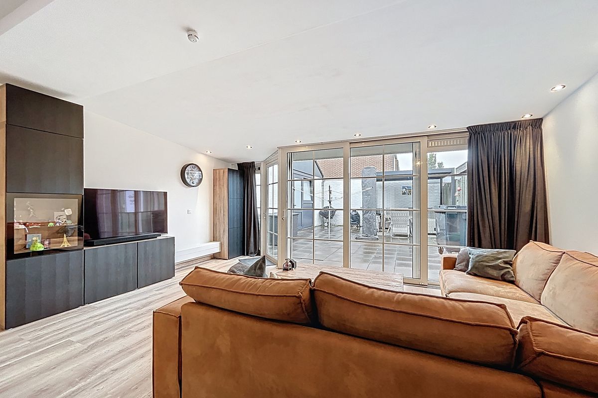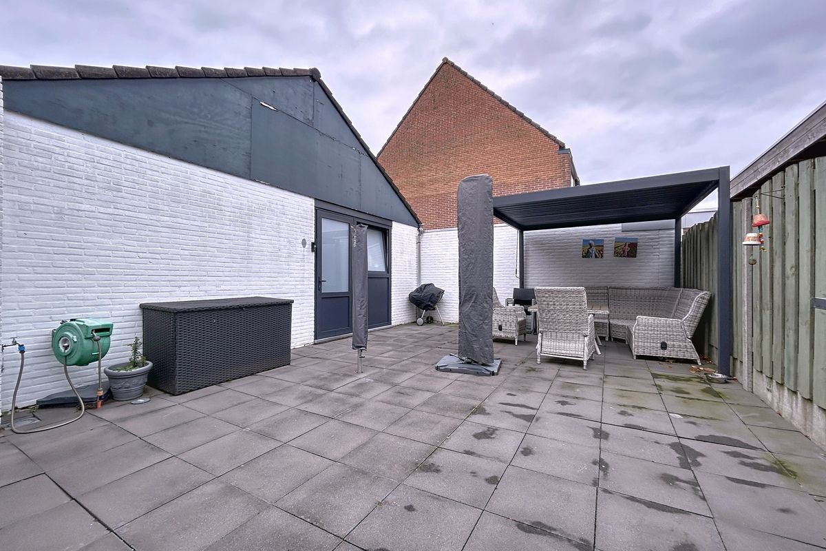 Ook de achtertuin is onderhoudsvriendelijk en heeft nog veel ruimte. Je hebt hier genoeg zon en de overkapping zorgt voor de eventuele schaduw in de zomer. Hier kan je fraai een loungeset in kwijt. Geniet ook van de privacy die je in deze tuin hebt. Tenslotte treffen we nog de ruime garage aan naast de tuin. Deze is breed genoeg om een auto in te plaatsen of voor je overige materialen en fietsen.
