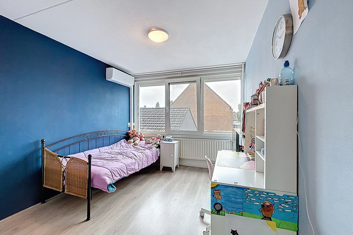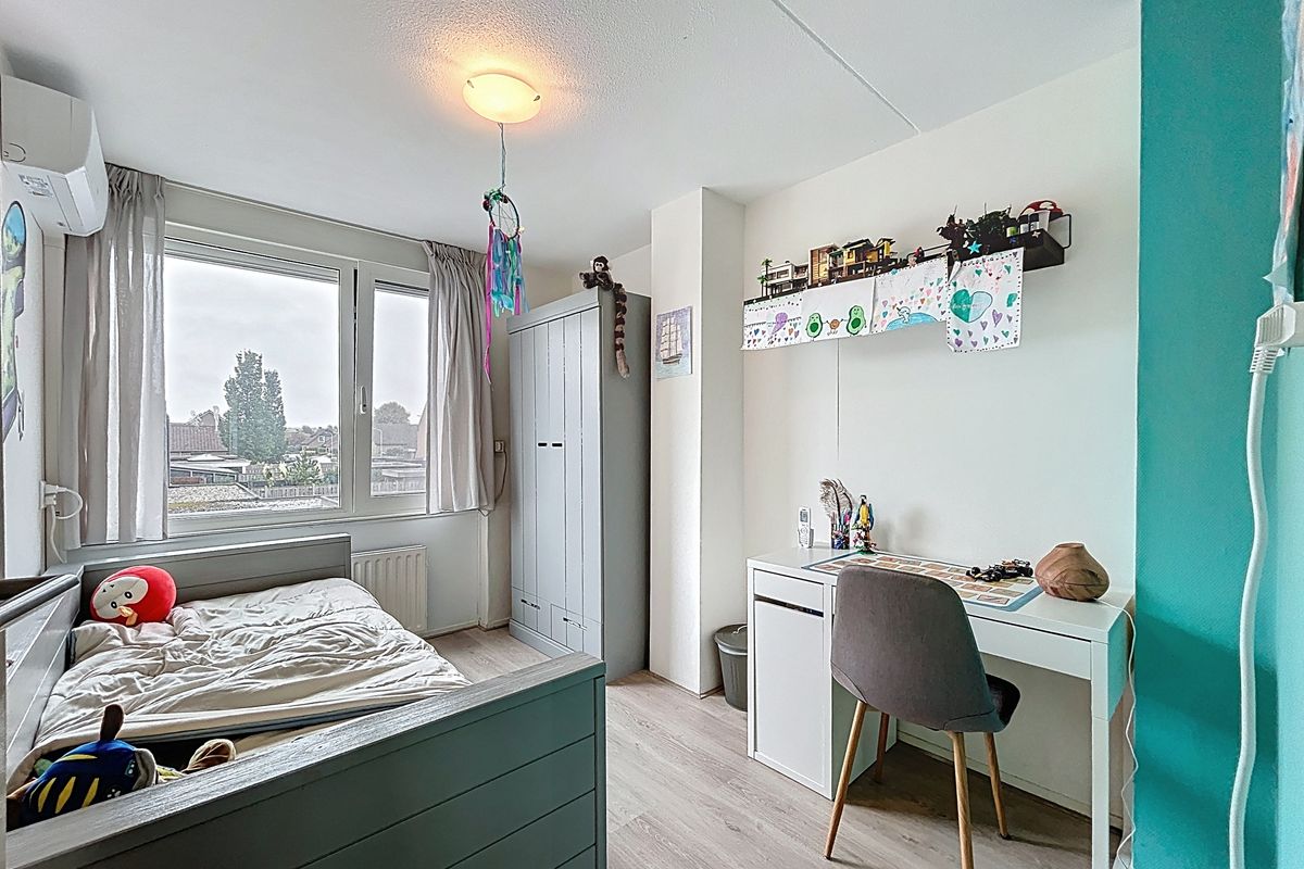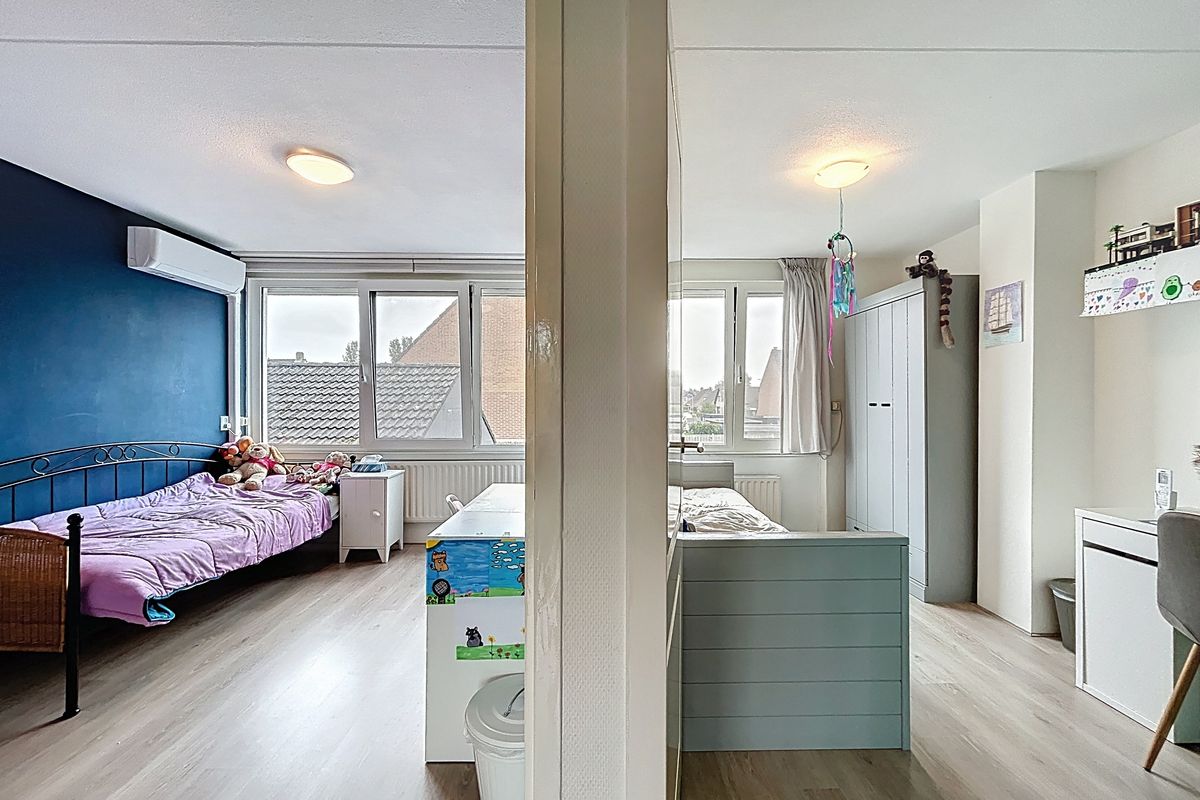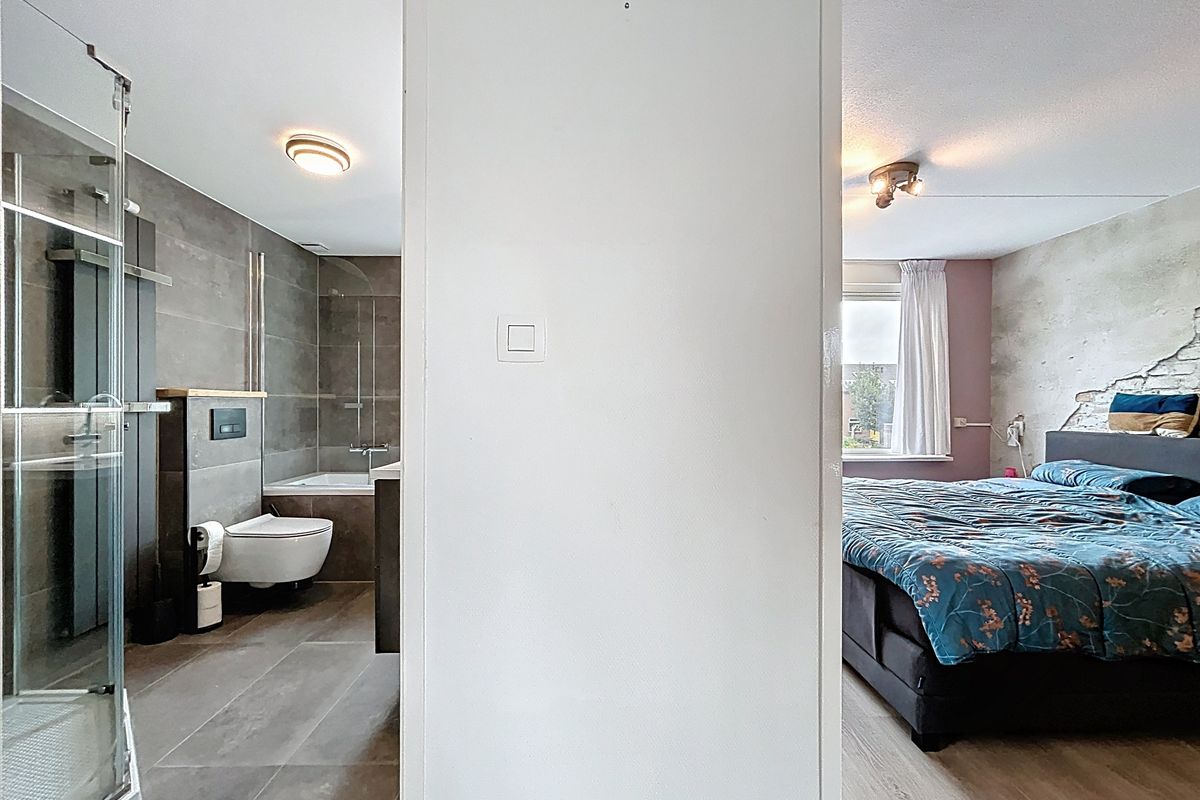 Middels de trap vanuit de hal wordt de ruime overloop betreden. Deze overloop biedt toegang tot de drie slaapkamers. De master bedroom is aan de voorzijde te vinden en kijk hier even goed naar, want er is alle ruimte voor een tweepersoonsbed en daarnaast is het voorzien van een fantastische walk-in-closet. Hier is echt aandacht aan besteed. De tweede slaapkamer is tevens groot genoeg voor een tweepersoonsbed en een kledingkast en de derde slaapkamer is een leuke kinderkamer voor een éénpersoonsbed, kast en bureau. Tenslotte treffen we op deze verdieping de ruime badkamer aan. Deze is in 2023 volledig vernieuwd en voorzien van een heerlijk ligbad, een inloopdouche, een toilet en een wastafel. Ook deze ruimte is dus weer van alle gemakken voorzien.