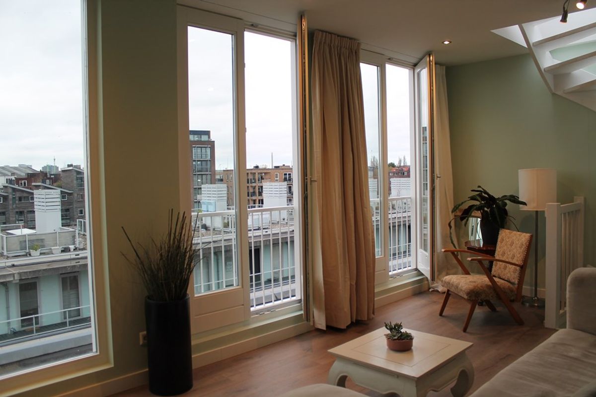 Wonderful, bright and cozy top floor apartment with splendid (free) views from the balcony and roof terrace!
