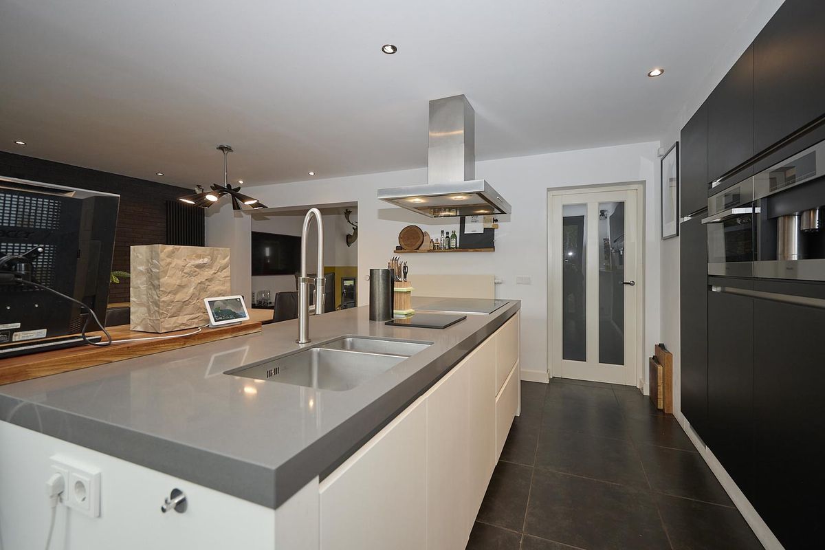 Bij binnenkomst ervaar je direct de warme, uitnodigende sfeer die deze woning zo bijzonder maakt. De woonkamer heeft uitzicht op het groene plantsoen en vormt het hart van het huis, perfect voor gezellige familieavonden of ontspannen momenten. De royale woonkeuken is een heerlijke plek om samen te koken en te genieten van goede gesprekken aan de eettafel. De keuken beschikt over diverse inbouwapparatuur zoals inductie kookplaat, afzuigkap, combi-magnetron en combi stoomoven, koelkast, diepvries en vaatwasser. Door de brede schuifpui richting de tuin worden binnen en buiten één.