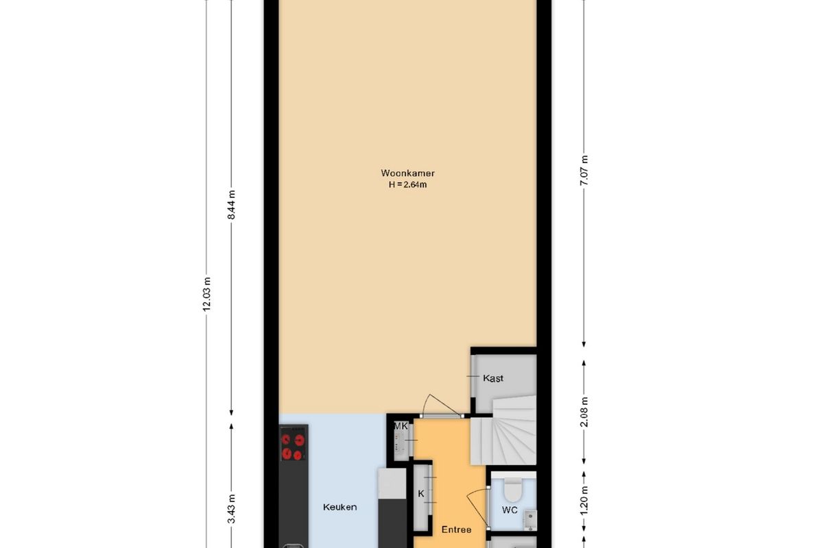 De open keuken (2023) bevindt zich aan de voorzijde en is uitgevoerd in een stijlvol en praktisch design, voorzien van hoogwaardige inbouwapparatuur en een kokendwaterkraan. Een heerlijke plek om te koken en samen te komen.