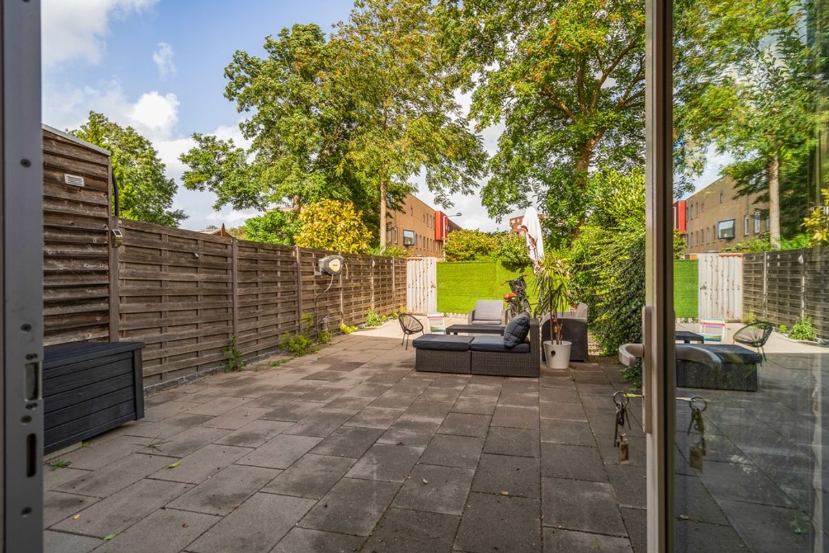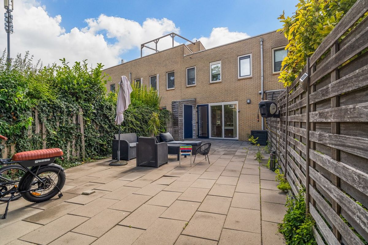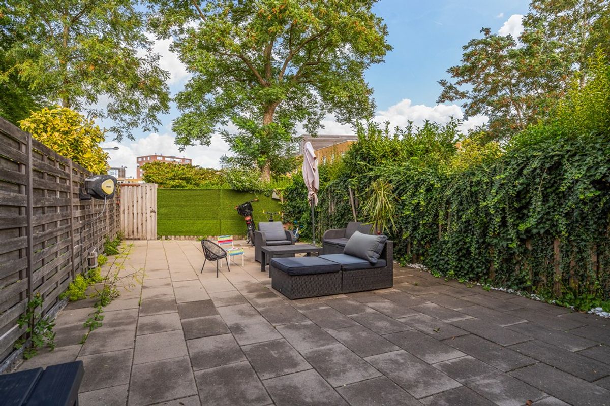 De achtertuin is volledig betegeld, dus onderhoudsvriendelijk én klaar om ingericht te worden naar jouw smaak. Dankzij de ligging geniet je hier volop van de zon, terwijl de erfafscheiding zorgt voor voldoende privacy. Achterin de tuin is een handige achterom en aan de voorzijde van de woning vind je een royale stenen berging – praktisch én ruim genoeg voor fietsen, gereedschap of extra opslag.