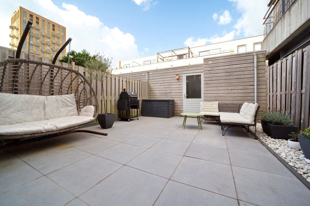 The private west/southwest-facing garden of approx. 30 m² is the perfect place to enjoy the afternoon and evening sun. At the back of the garden, you’ll find a practical bike shed with rear access. Enough space for both a lounge corner and an outdoor dining table — ideal for relaxed living.