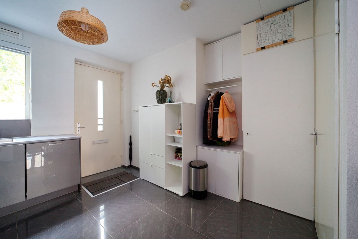 Naast veel leefruimte biedt deze woning ook voldoende bergruimte. In de woonkamer bijvoorbeeld is ruimte onder de trap maar ook in de tuin tref je een ruime schuur van ca. 5 m2 voor nog meer bergruimte.